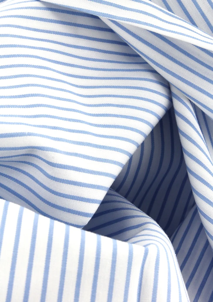 Chemise à fines rayures bleu ciel col et poignets mousquetaires blancs
