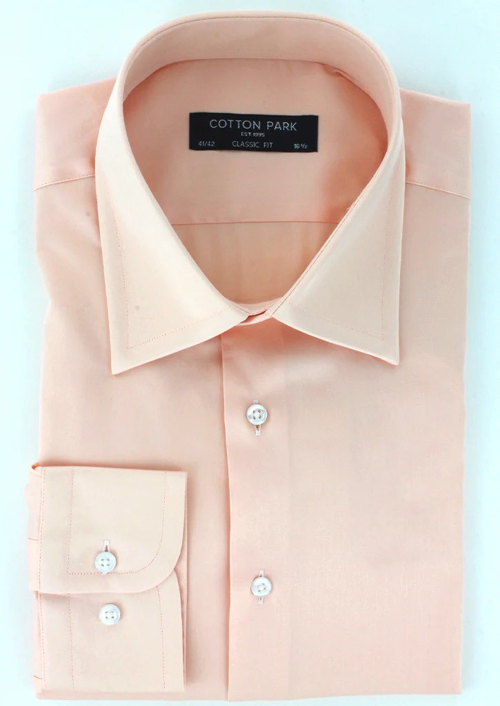 Chemise classique en satin de coton saumon col français