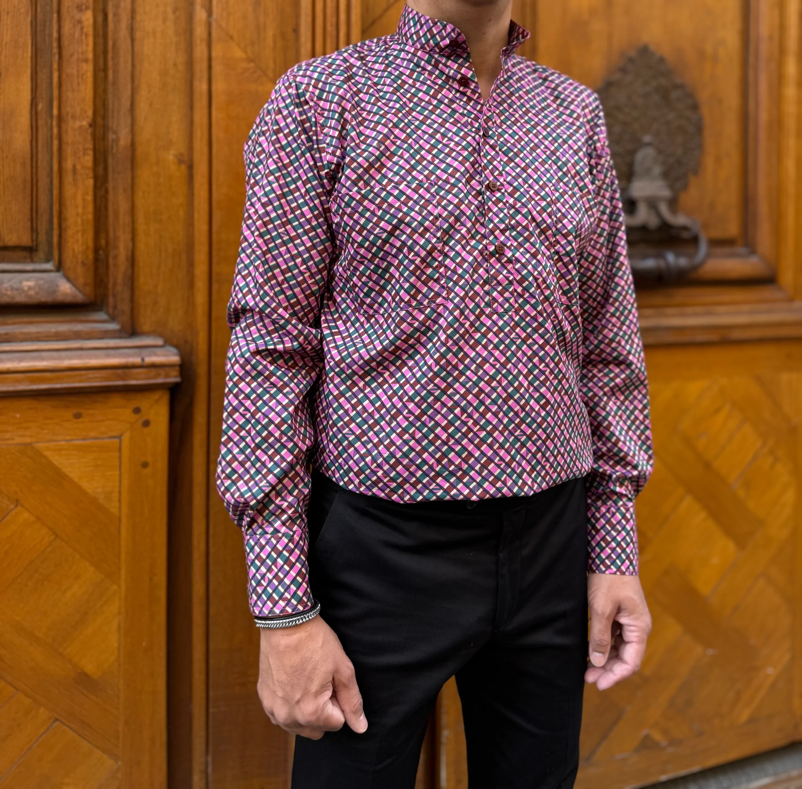chemise col mao en coton Liberty® géométrie