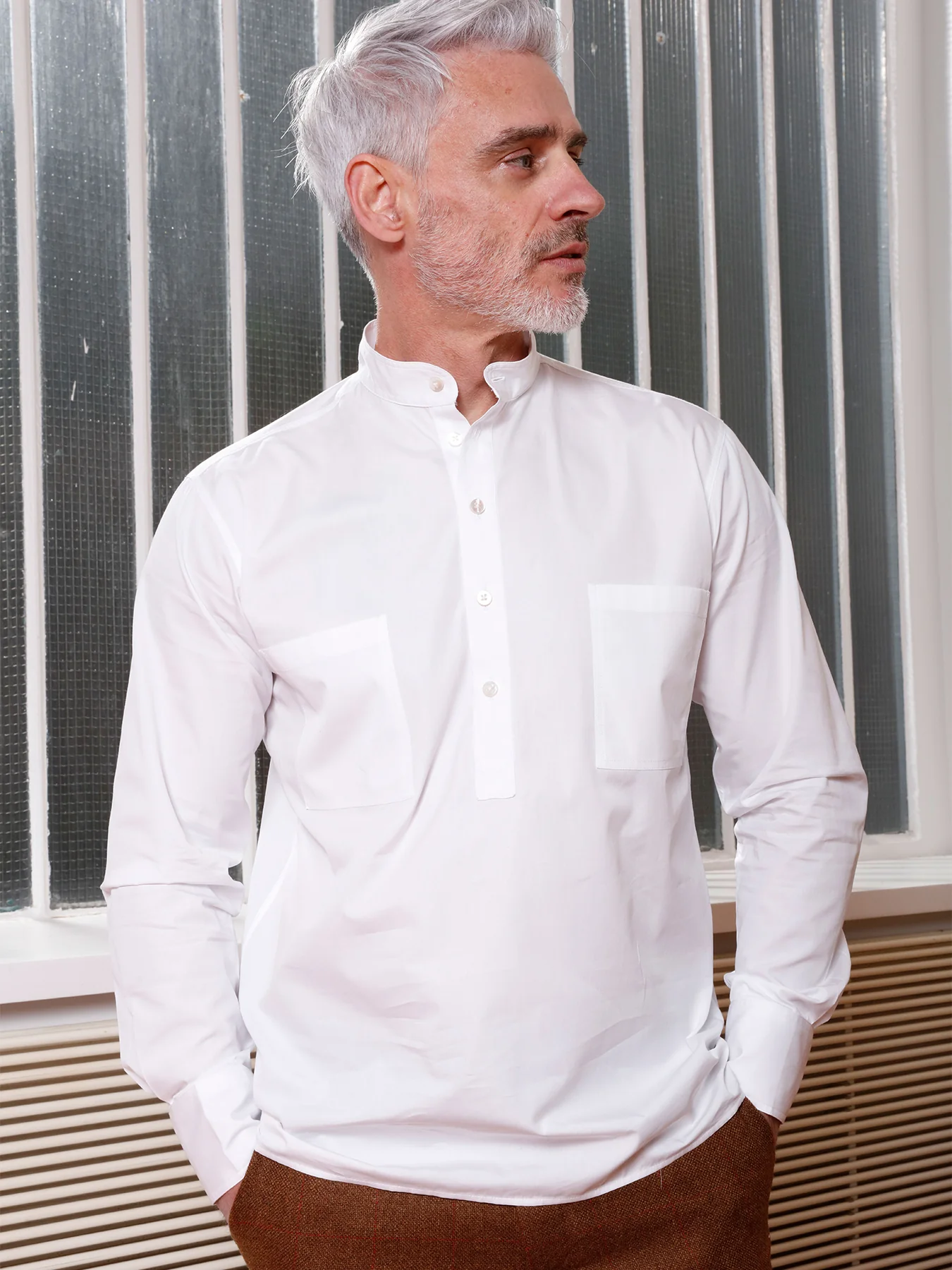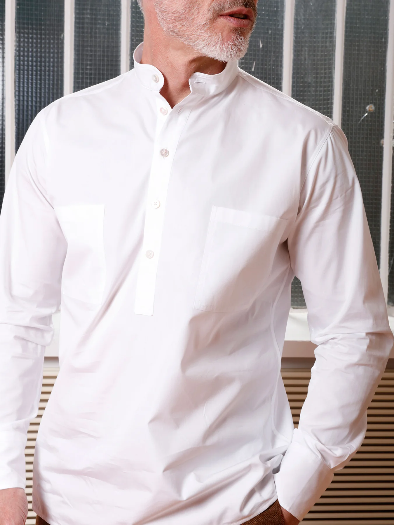 chemise col mao en popeline blanche de luxe