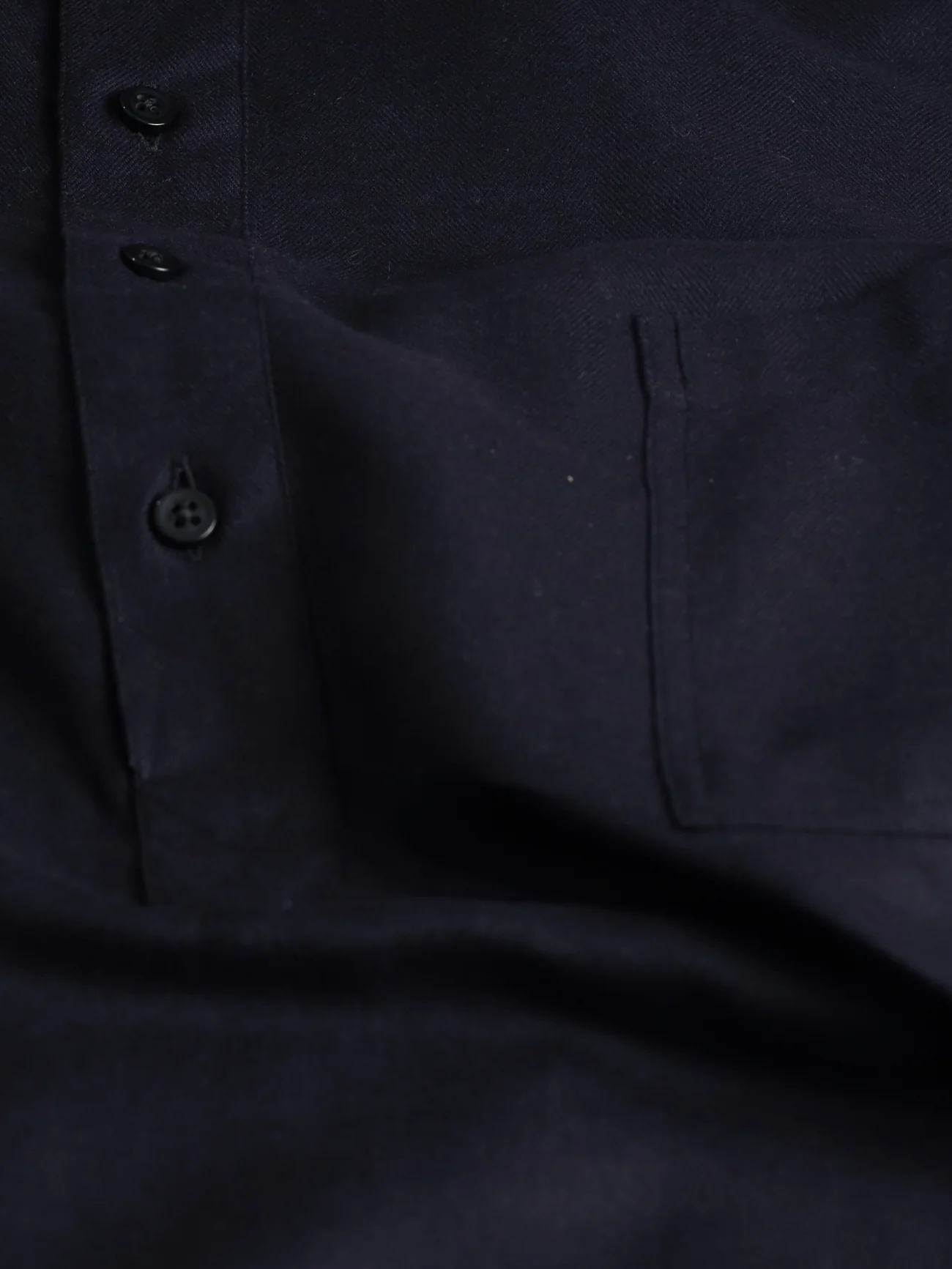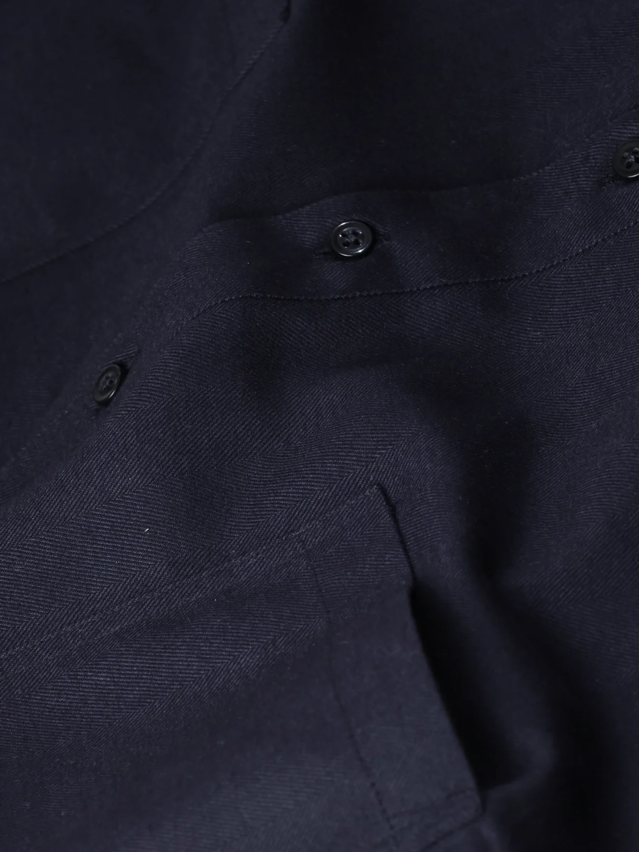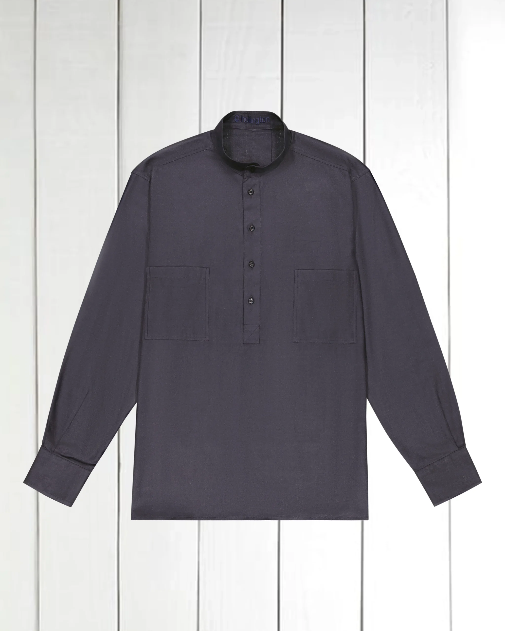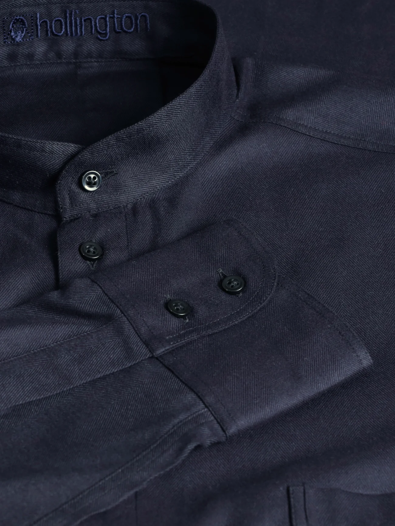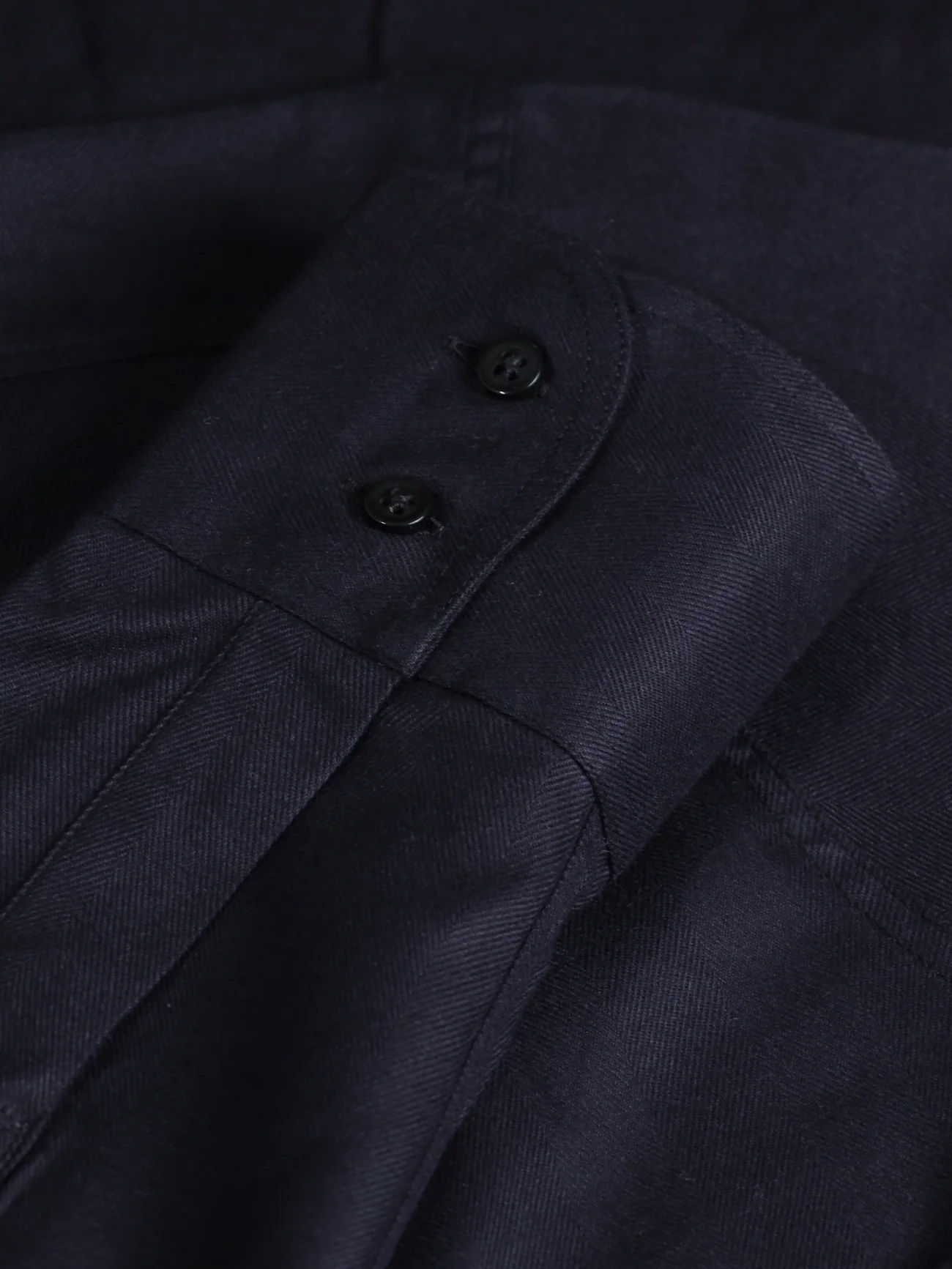 chemise col mao en toile de coton et clycell black __TAB__ fiche technique Chemise col mao Coupe droite Manches longues Poignets à double boutonnage Deux poches poitrine Patte de boutonnage jusqu’à mi-corps Pli d’aisance au dos Col et poignets légèrement entoilés Composition : 59 % coton, 41 % clycell tissé en Italie Fabriquée au Portugal […]