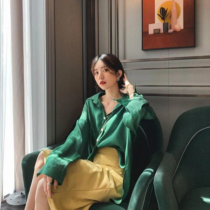 Cette chemise satinée est parfaite pour les amoureux de la mode coréenne. Elle est disponible en plusieurs couleurs. C’est un modèle parfait pour les événements de mode.