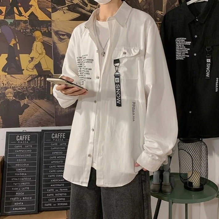 Cette chemise est faite en coton et en polyester. Elle est très douce et agréable à porter. Si vous aimez la mode coréenne et les vêtements noirs et blancs, cette belle chemise est faite pour vous. Elle possède un petit bandeau avec marqué « Snow », ce qui veut dire « neige ».