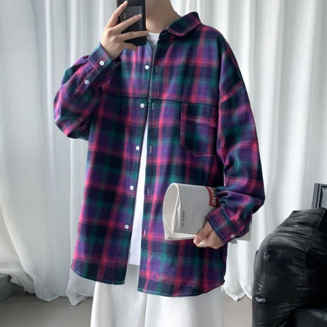 Si vous aimez le look tartan et les chemises à carreaux, vous allez adorer cette chemise colorée à la mode coréenne. Cette chemise est disponible en violet et en rouge. Elle a été conçue dans un tissu agréable et doux avec des manches longues.
