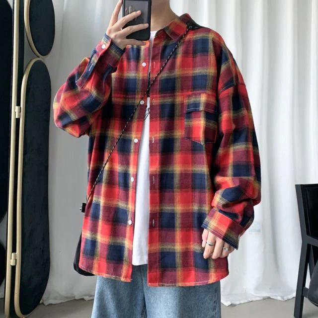 Une chemise avec un motif tartan dans un style coréen.