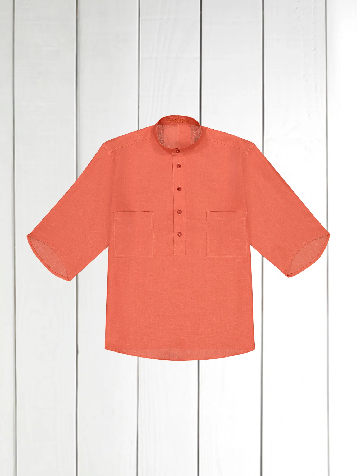 chemise Deauville manches courtes à col mao en toile pur lin coq de roche