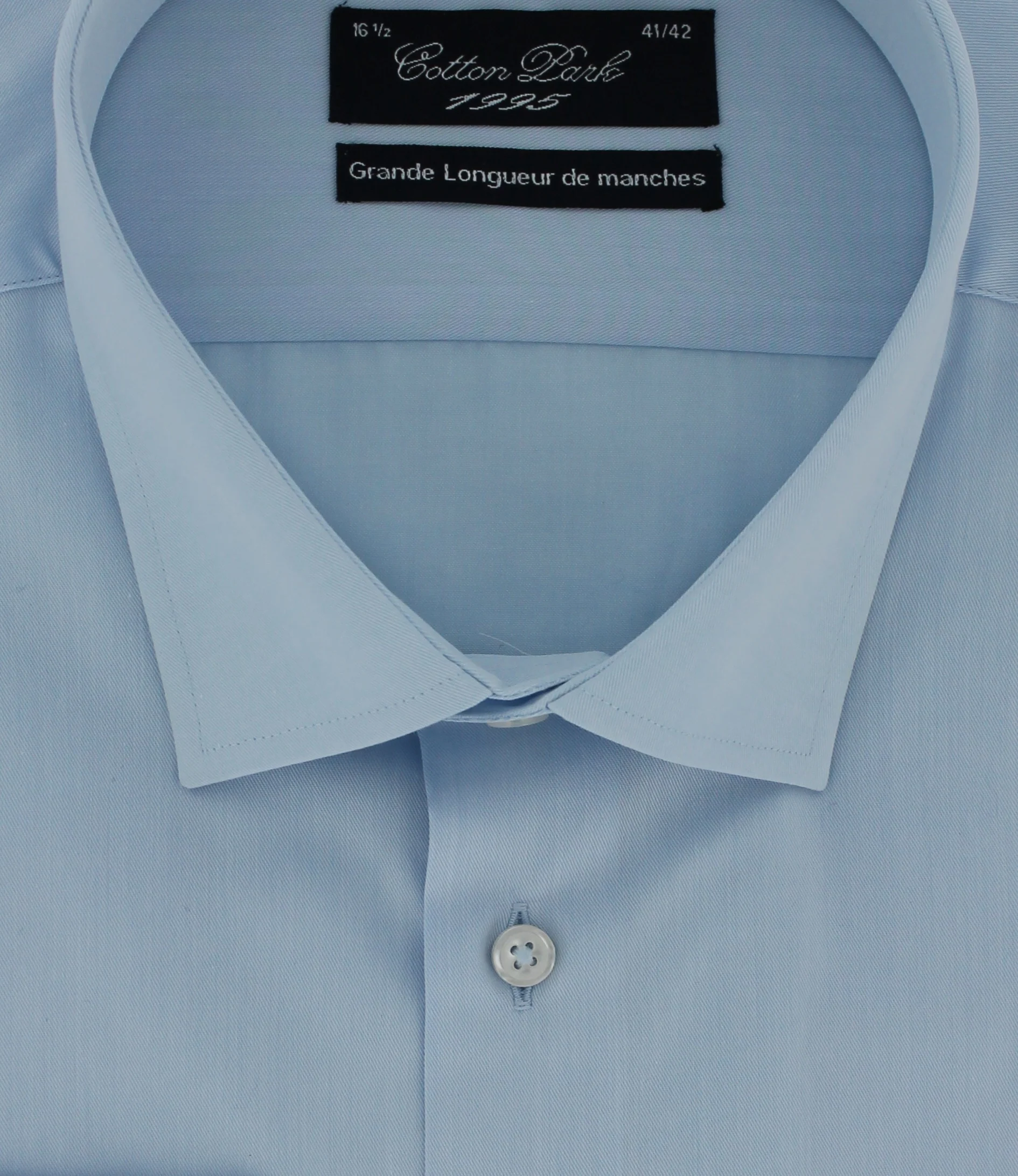 Ce tissu mi-saison très agréable s’entretient facilement. Indémodable, la chemise bleu ciel permet de varier le look de ses chemises et de ses tenues tout en conservant un style classique, chic et élégant.