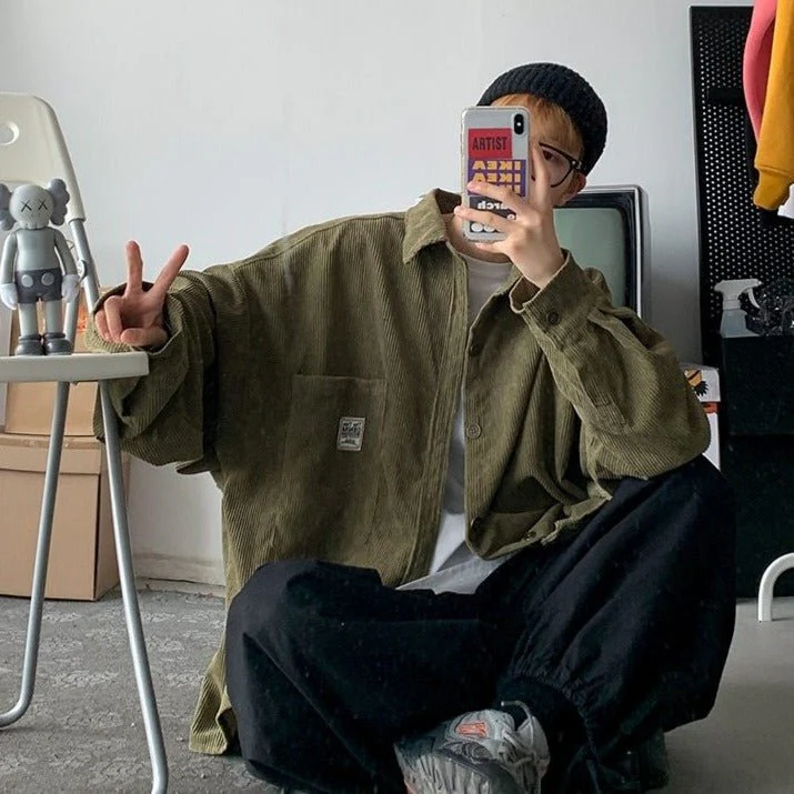 Cette chemise en velours possède des manches longues. Elle est parfaite pour bien s’habiller rapidement. C’est une chemise très courante en Corée du Sud, car elle est belle, confortable et pratique.