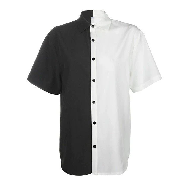 Voici une chemise qui est parfaite pour les filles qui veulent s’habiller comme en Corée du Sud. C’est une chemise avec un côté noir et un blanc. Elle est parfaite pour faire une robe courte.