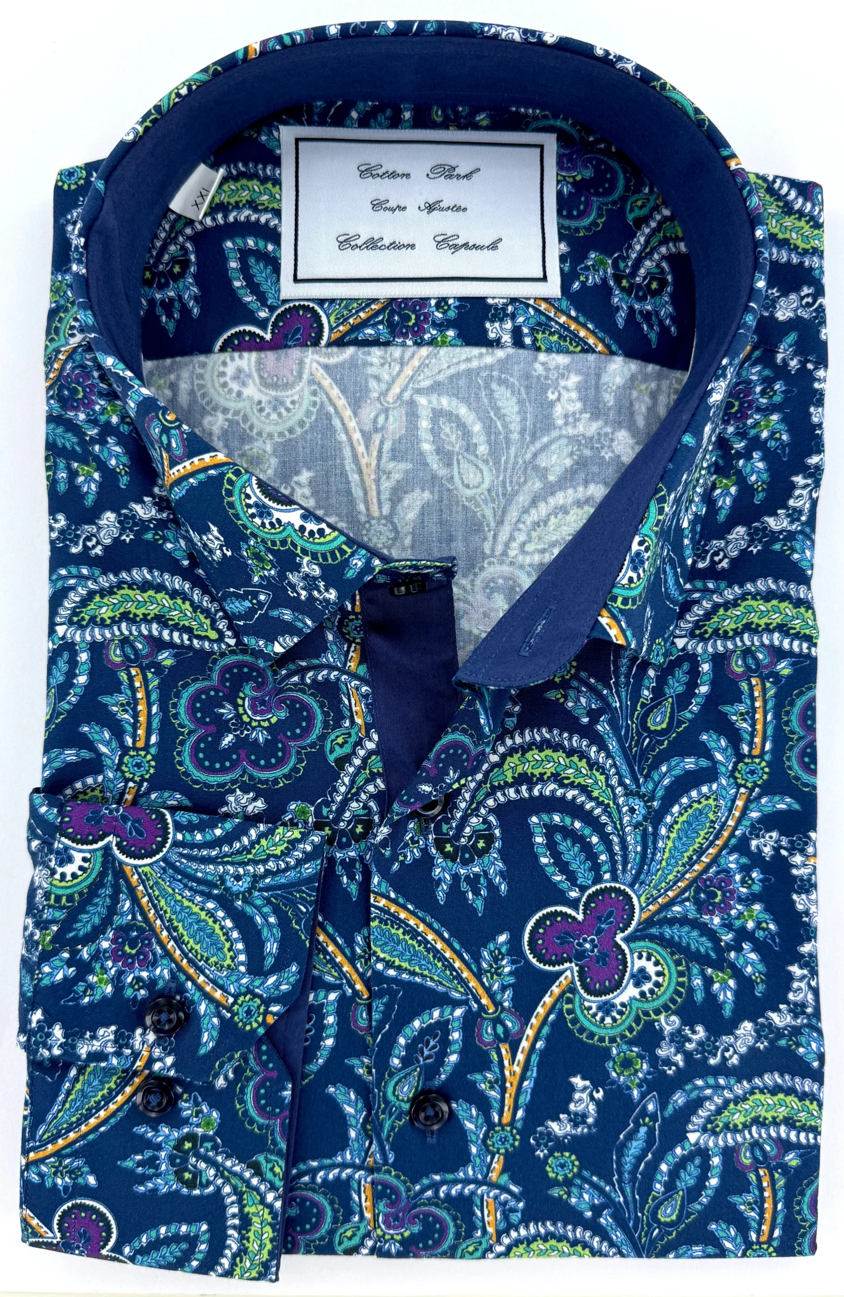 Chemise motifs cachemire bleu – Aruba