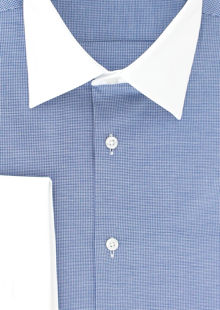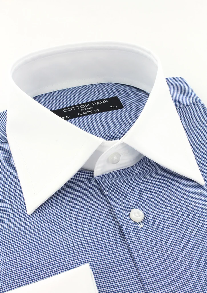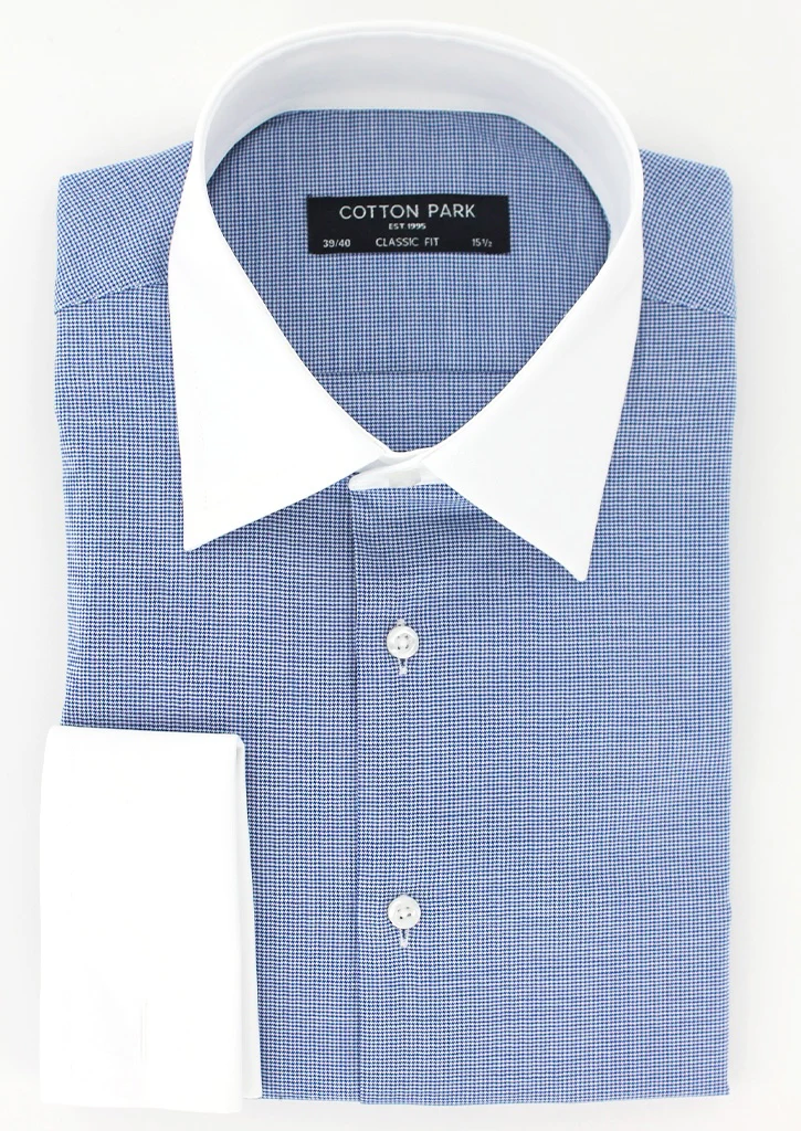 Chemise pied-de-poule bleu marine col et poignets mousquetaires blancs