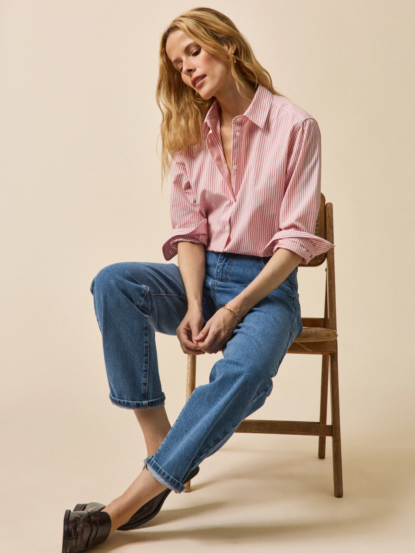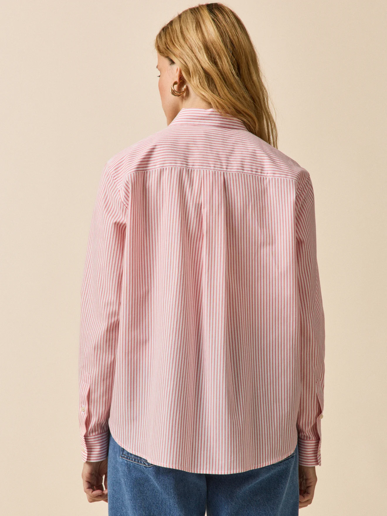Des rayures tissé-teint sur une belle matière en coton biologique. Une coupe droite au volume généreux. Une chemise chic à porter en ville comme en week-end.