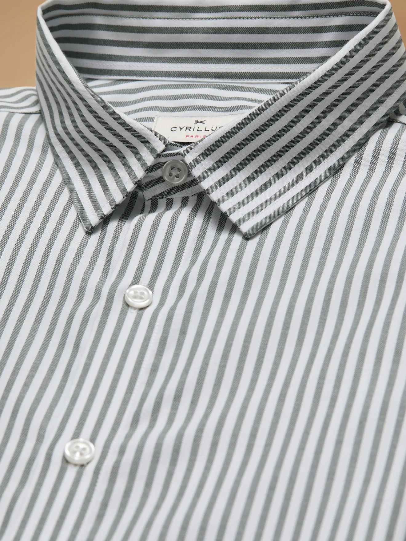 La chemise rayée fait partie des essentiels du vestiaire masculin. Confectionnée au Maroc dans une belle matière en coton biologique certifié et tissée au Portugal, celle-ci s’offre un style facile entre casual et urbain. Coupe contemporaine convenant à toutes les morphologies.