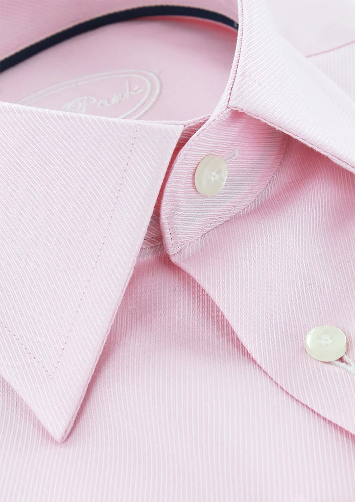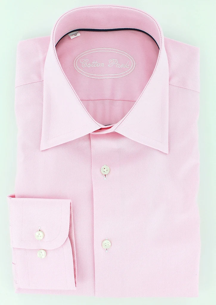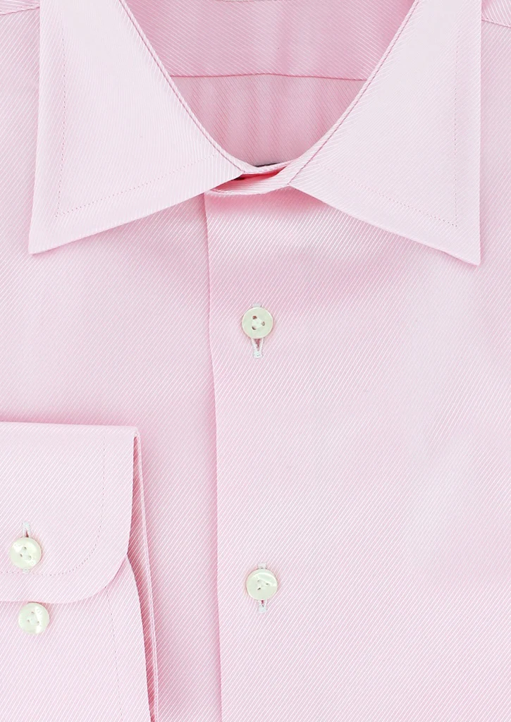 Chemise rose en twill double retors coupe droite pour homme possède un col classique. Cette chemise pour homme haut de gamme à été conçue en manches longues avec poignets simples réglables.