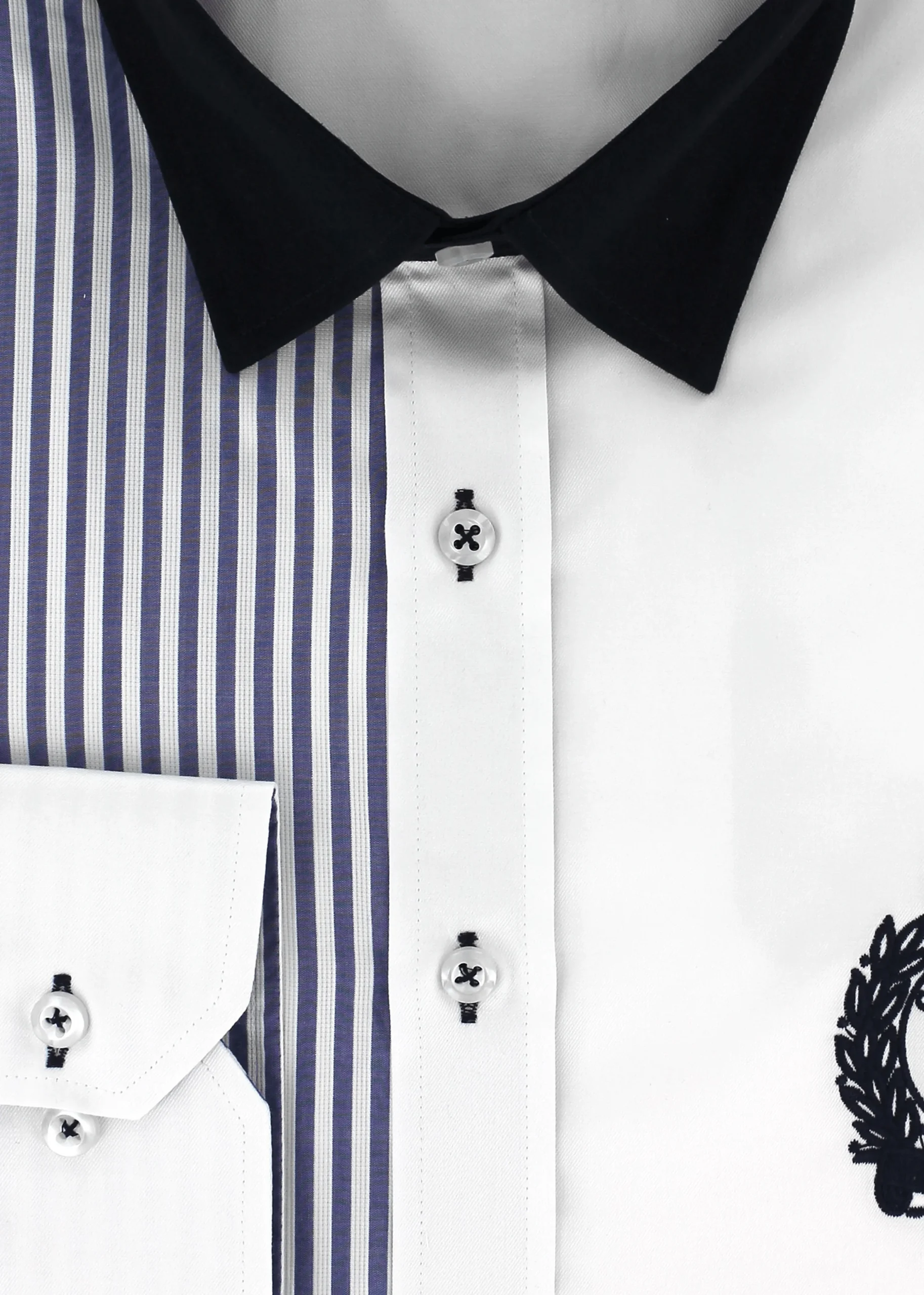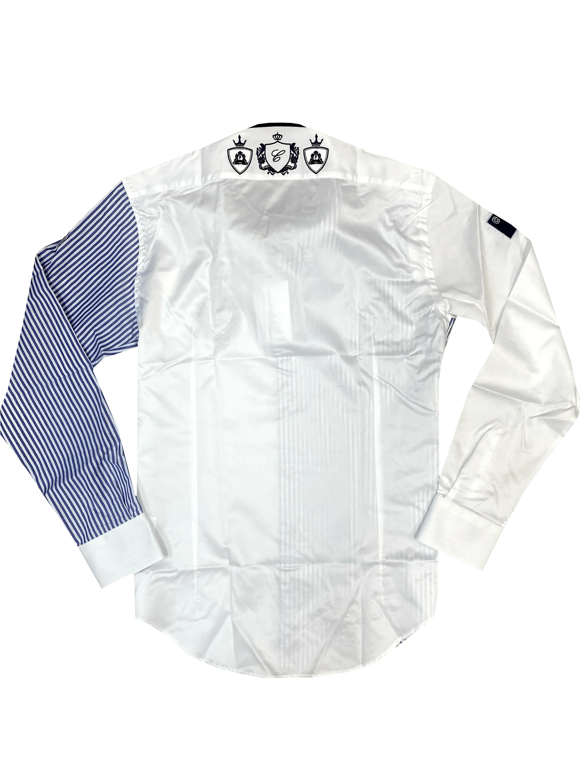 Cette chemise est le résultat d’un assemblage parfait de deux motifs comprenant l’uni blanc et rayures de couleur bleu. Les deux boutons présents au poignet vous permettront d’ajuster la taille de celui-ci au vôtre.