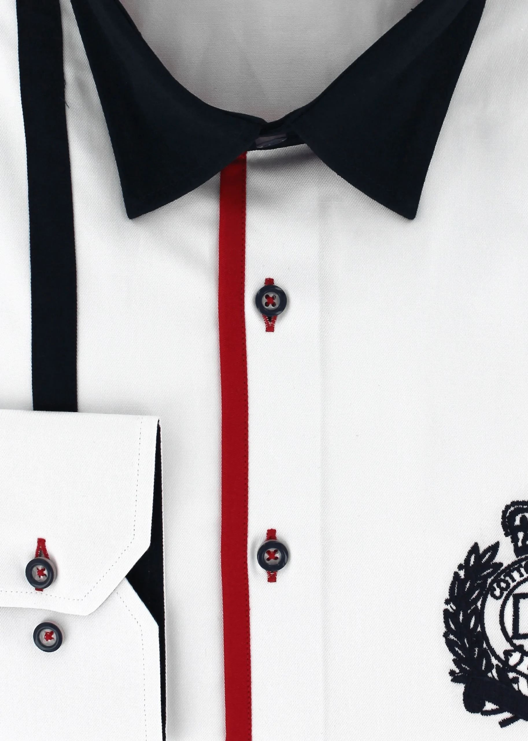 Cette chemise est le résultat d’un assemblage parfait de deux motifs comprenant l’uni blanc et rayures de couleur bleu et rouge. Les deux boutons présents au poignet vous permettront d’ajuster la taille de celui-ci au vôtre.