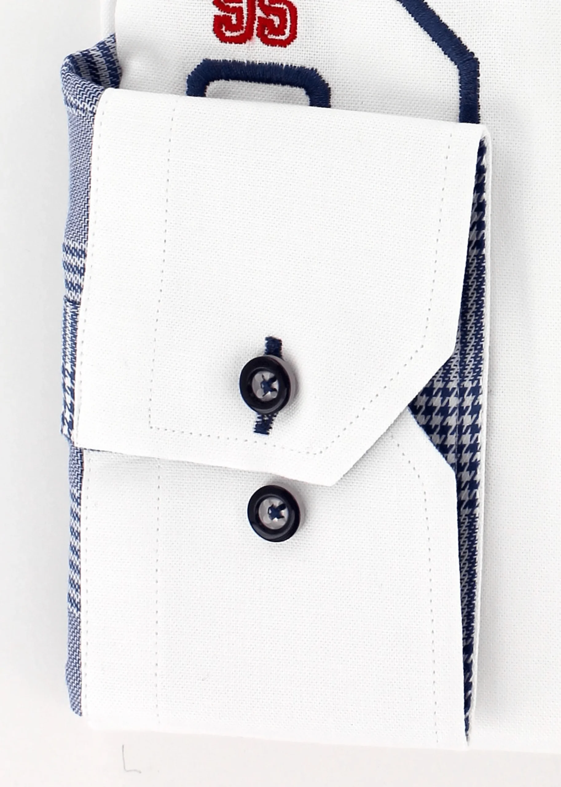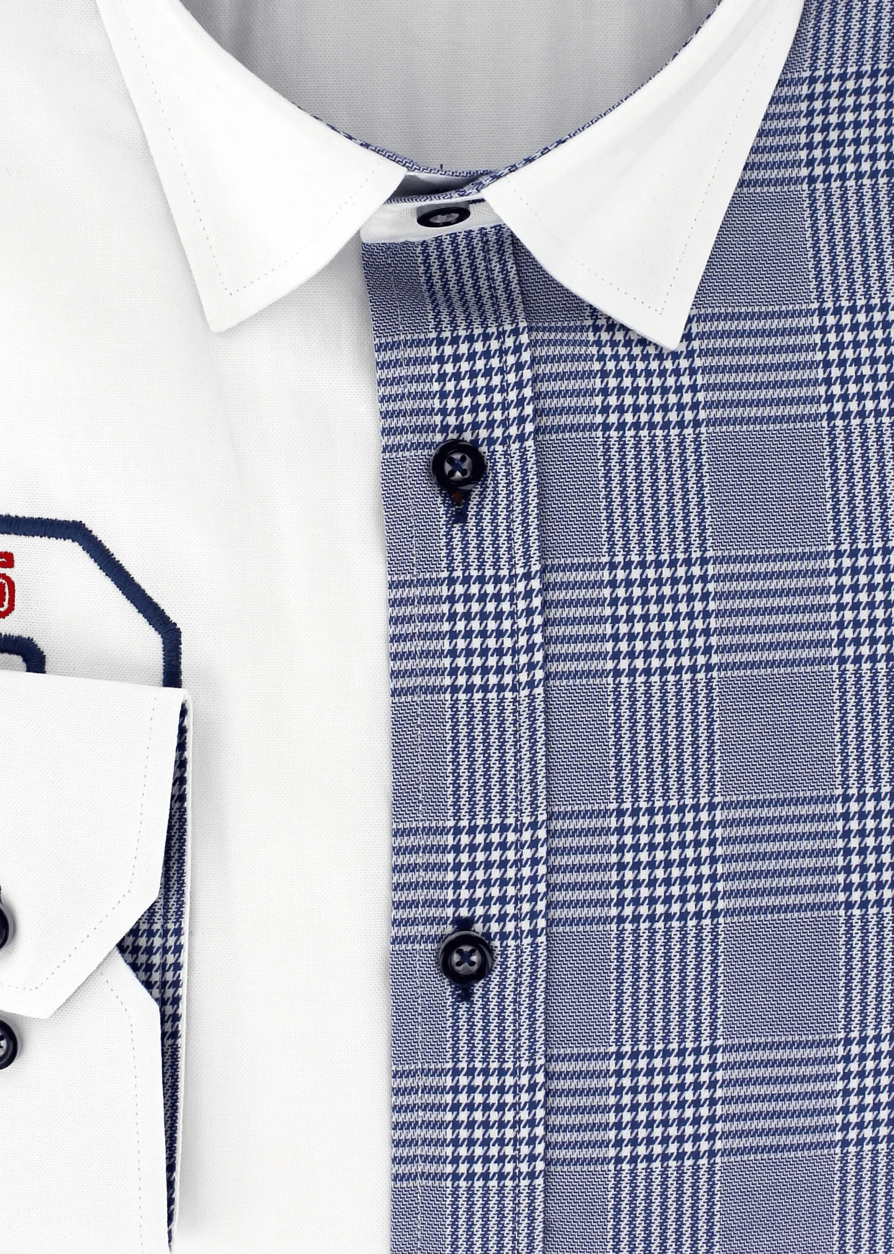Cette chemise est le résultat d’un assemblage parfait de deux motifs comprenant l’uni blanc et carreaux de couleur bleu. Les deux boutons présents au poignet vous permettront d’ajuster la taille de celui-ci au vôtre.