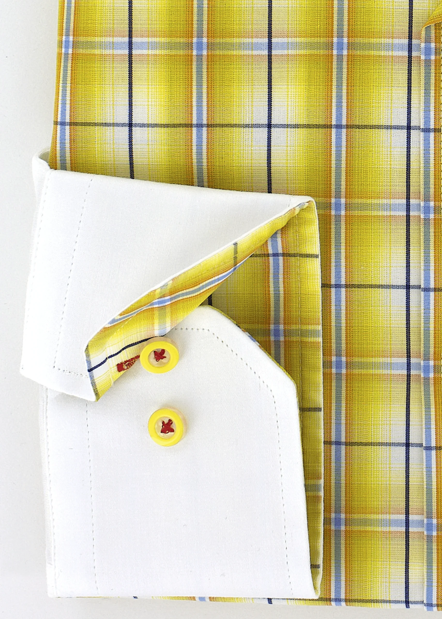 Cette chemise est le résultat d’un assemblage parfait de deux motifs comprenant l’uni blanc et carreaux de couleur jaune. Les deux boutons présents au poignet vous permettront d’ajuster la taille de celui-ci au vôtre.