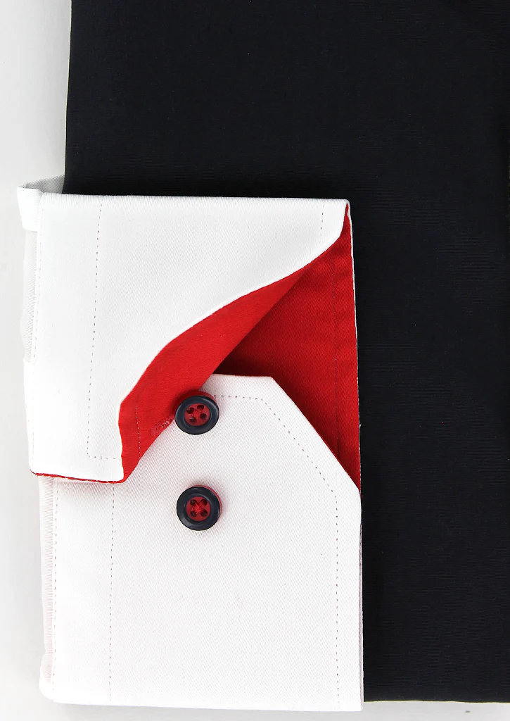 Cette chemise bleu marine, rouge et blanche possède deux boutons présents au poignet qui vous permettrons d’ajuster la taille de celui-ci au vôtre.