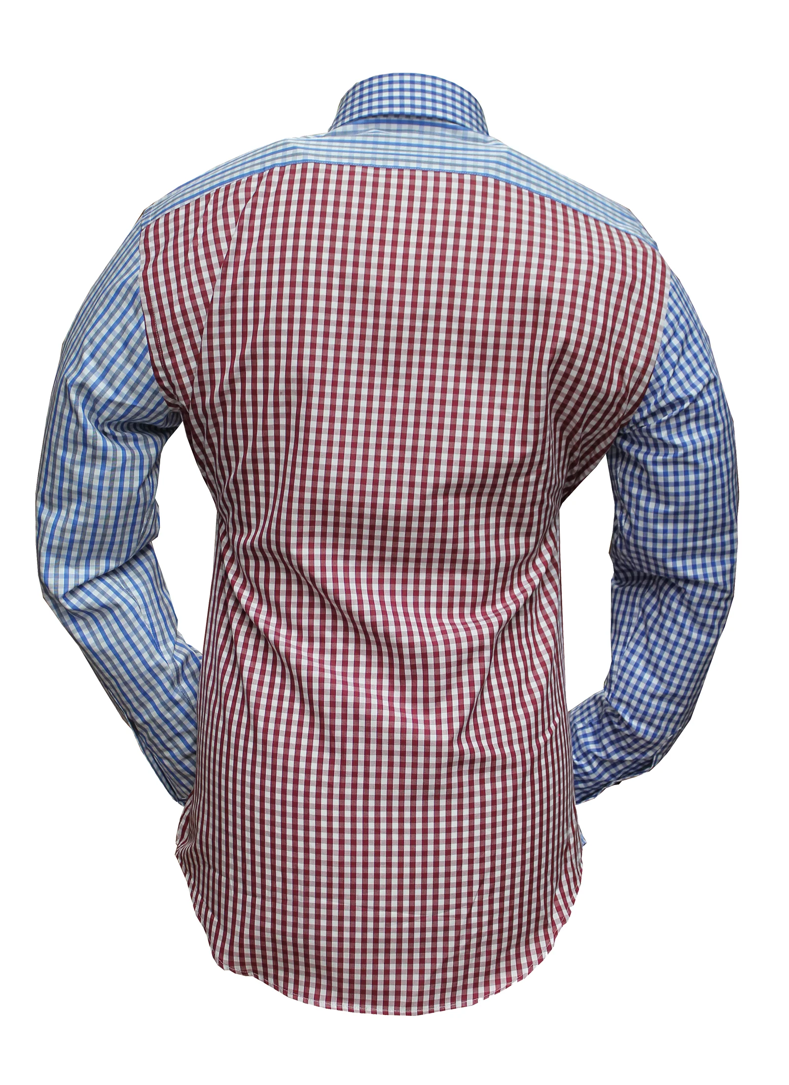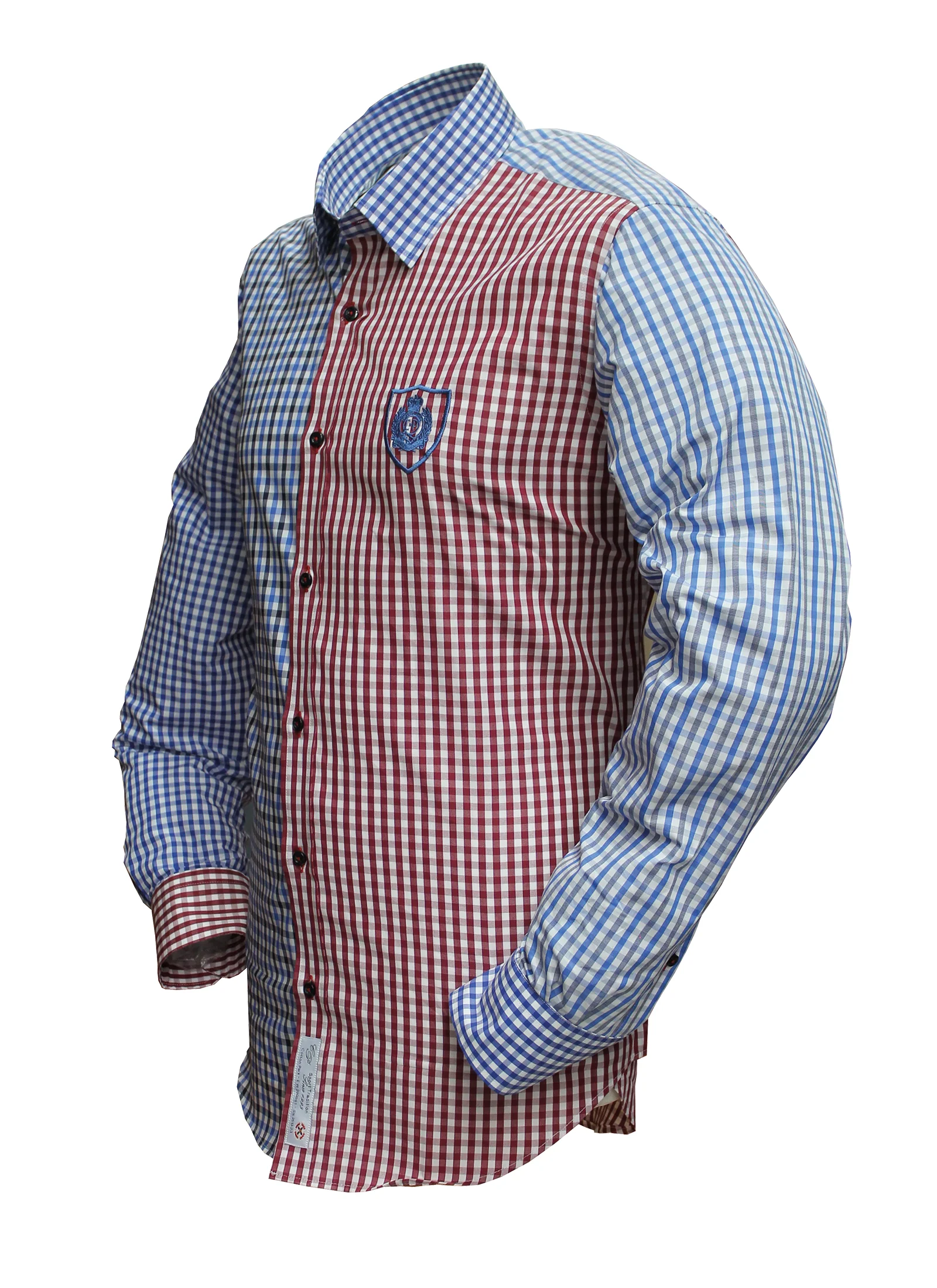 Chemise sport chic patchwork rouge et bleu
