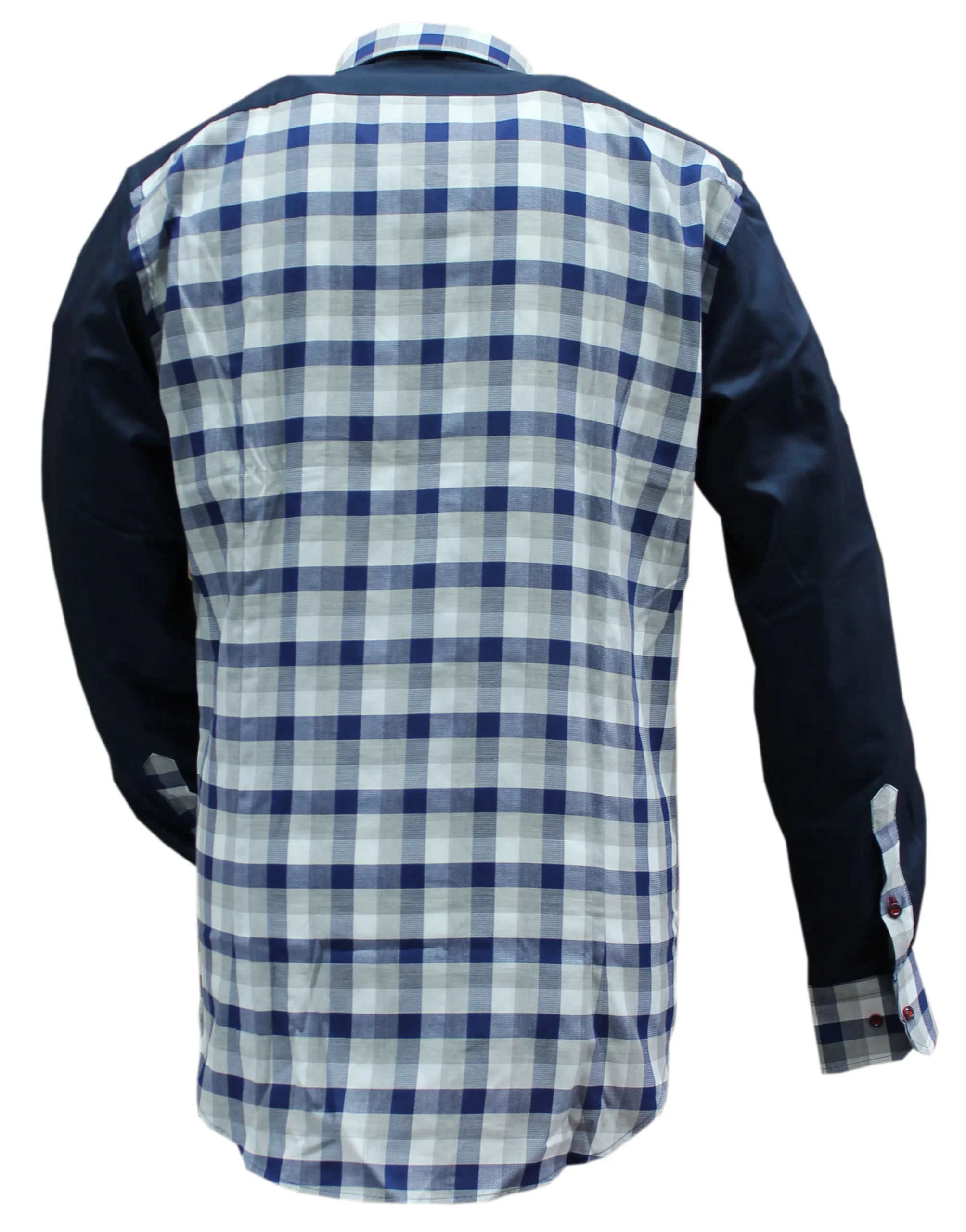 Cette chemise est le résultat d’un assemblage parfait d’un motif à carreaux marine au torse et d’une couleur unie bleu marine aux épaules. Les deux boutons présents au poignet vous permettront d’ajuster la taille de celui-ci au vôtre.