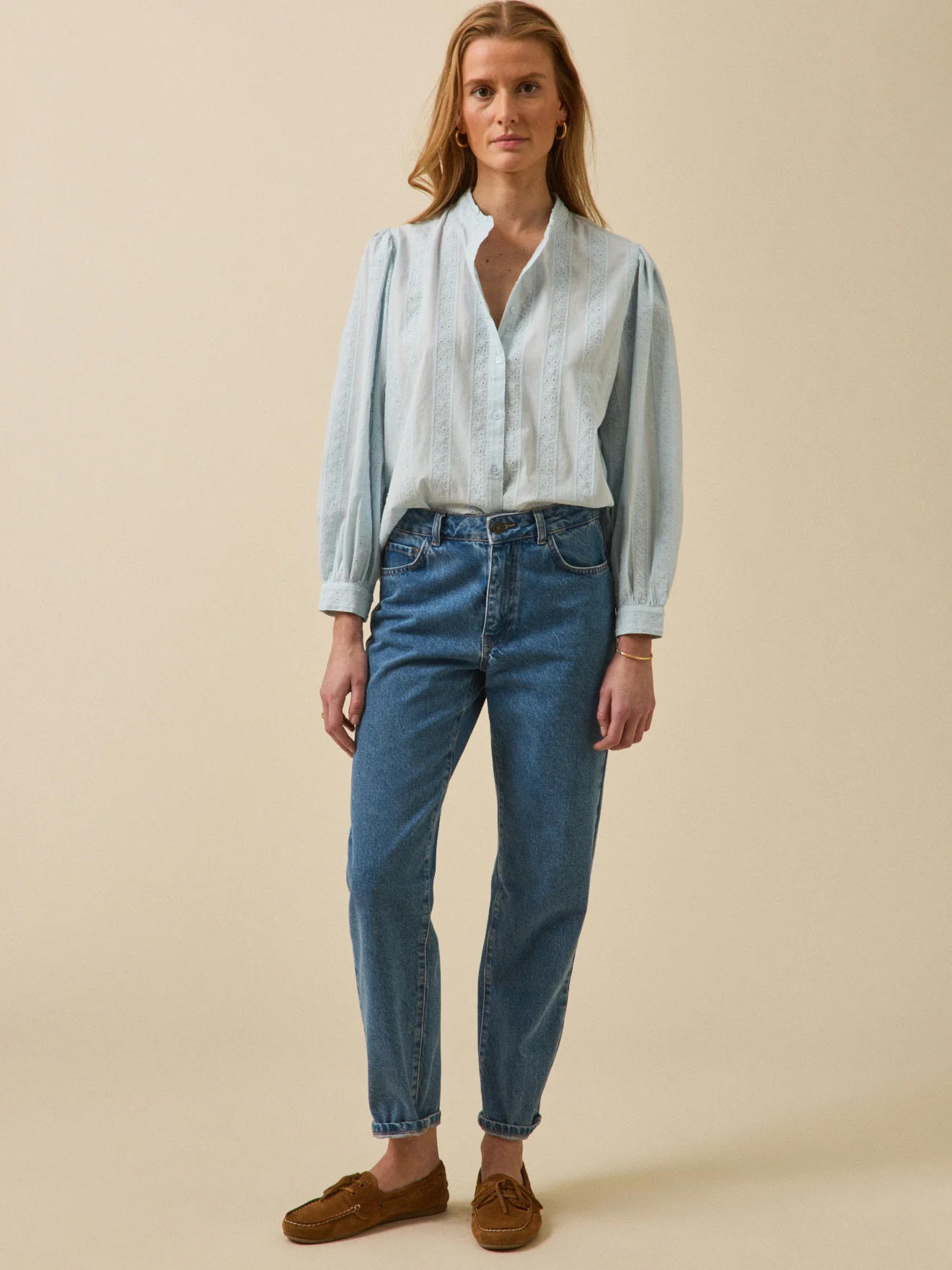Entre moderne et romantique, la chemise marie la délicatesse de la broderie anglaise à la douceur du coton biologique. Et insuffle une élégance naturelle au quotidien.