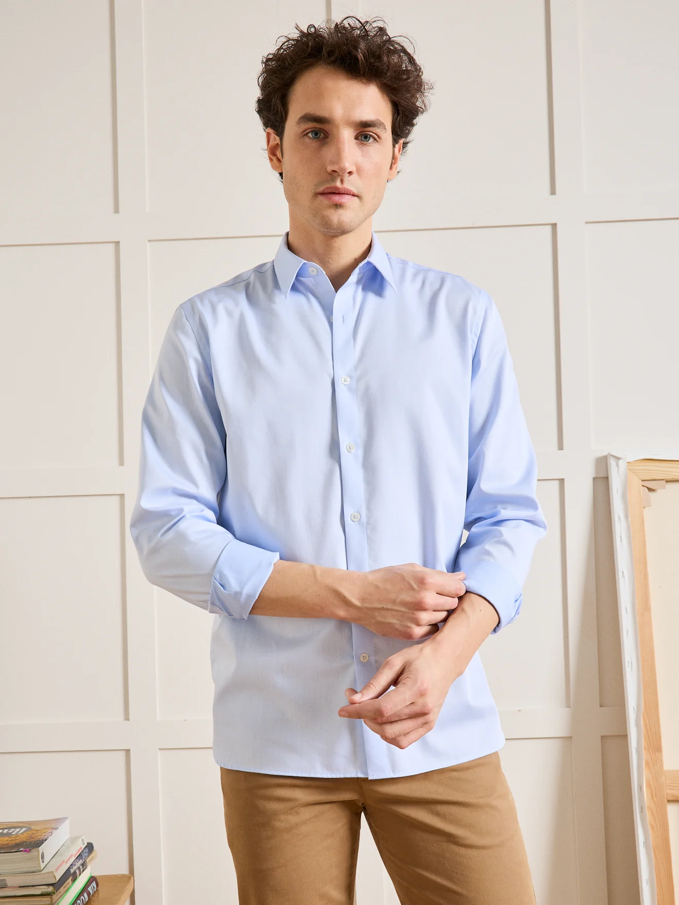 Elle bénéficie d’un twill au toucher lisse et soyeux. Parfaite pour accompagner un look urbain chic, la chemise unie sait aussi se faire décontractée. Col classique, patte boutonnée et poignets arrondis avec boutonnage ajustable 2 positions. Coupe droite convenant à toutes les morphologies.