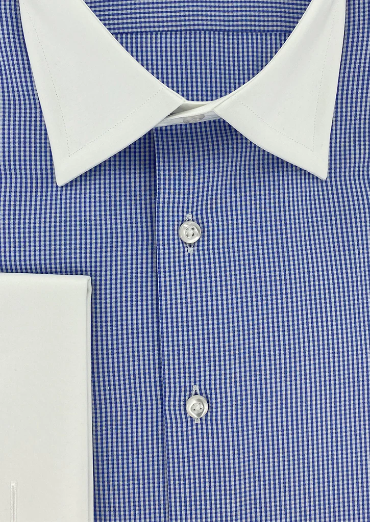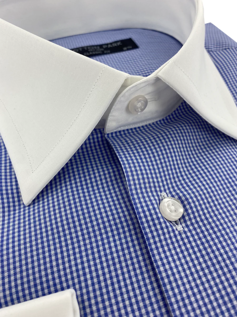 Chemise vichy bleu avec col et poignets mousquetaires blancs