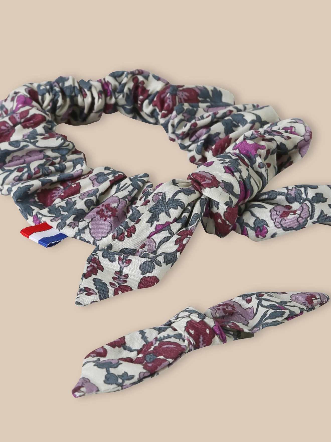 - 1 chouchou + 1 pince noeud en tissu Liberty Meadow Song.