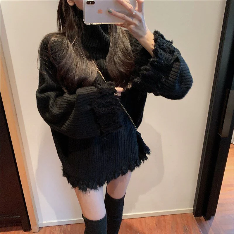 Ce pull coréen est un col roulé chaud.