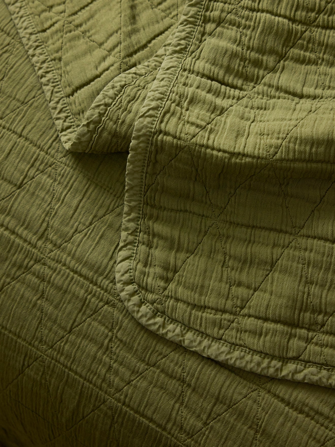 Plaid ou couvre-lit en coton piqué fabriqué au Portugal. Les piqûres façon quadrillage ou losanges lui procurent une élégance épurée et un effet volume aérien.