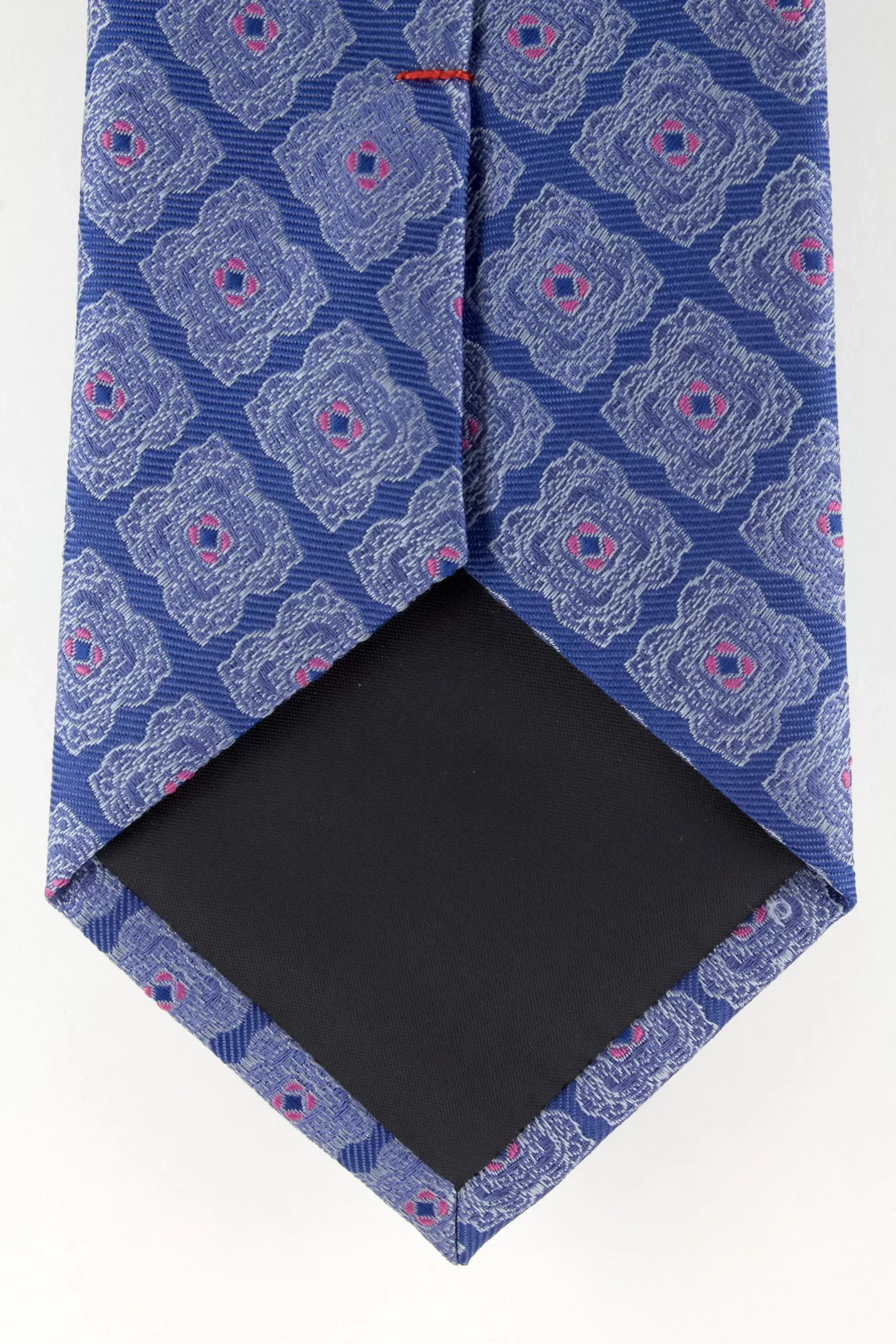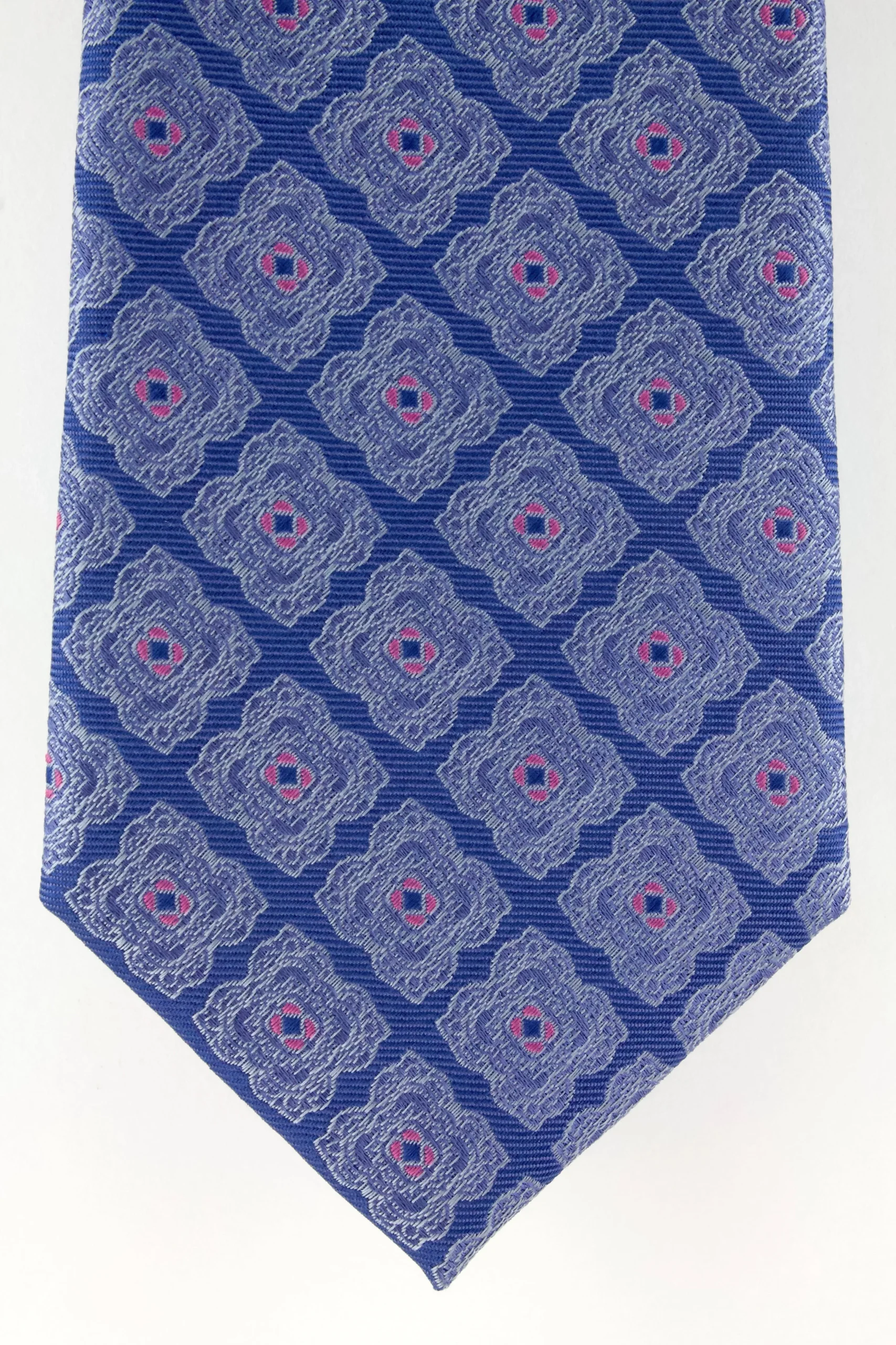 Cravate en soie tissée bleu ciel motif fleur. Cravate Cotton Park d’une largeur de 8 cm. Nettoyage à sec.