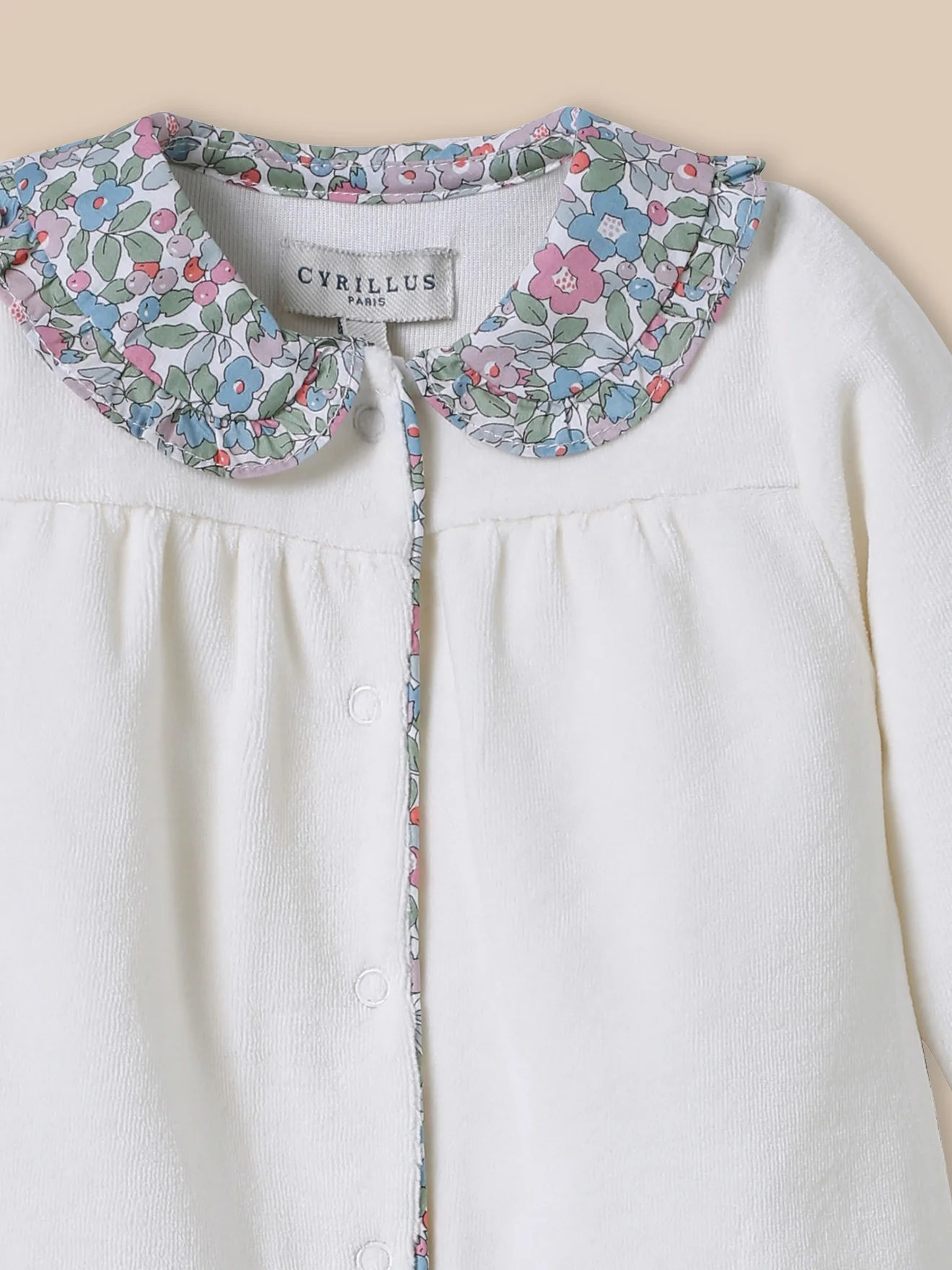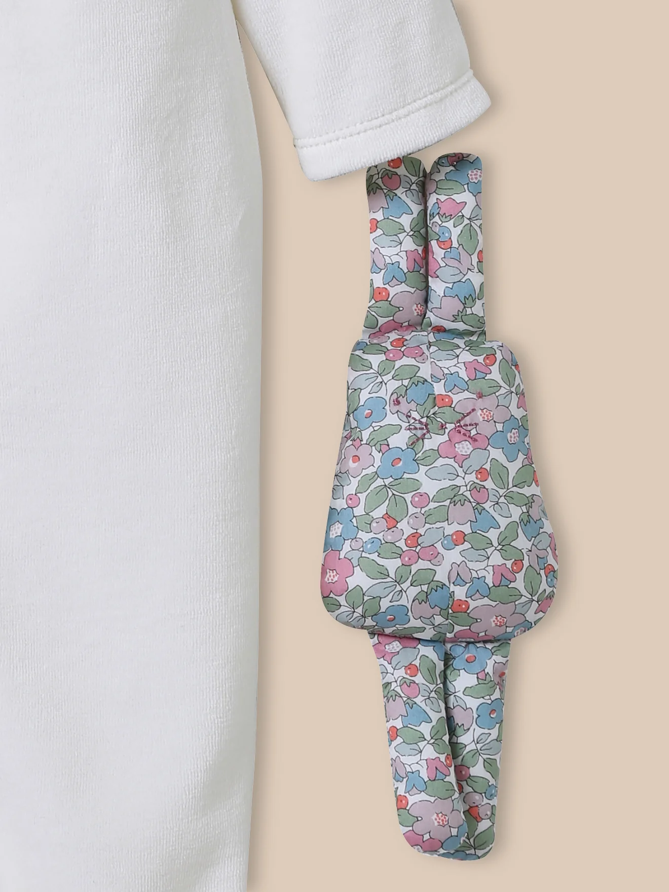 Un dors-bien très raffiné avec son col en tissu Liberty et son doudou assorti. Pratique, l’ouverture devant pour habiller avec facilité bébé. Une merveilleuse idée cadeau.