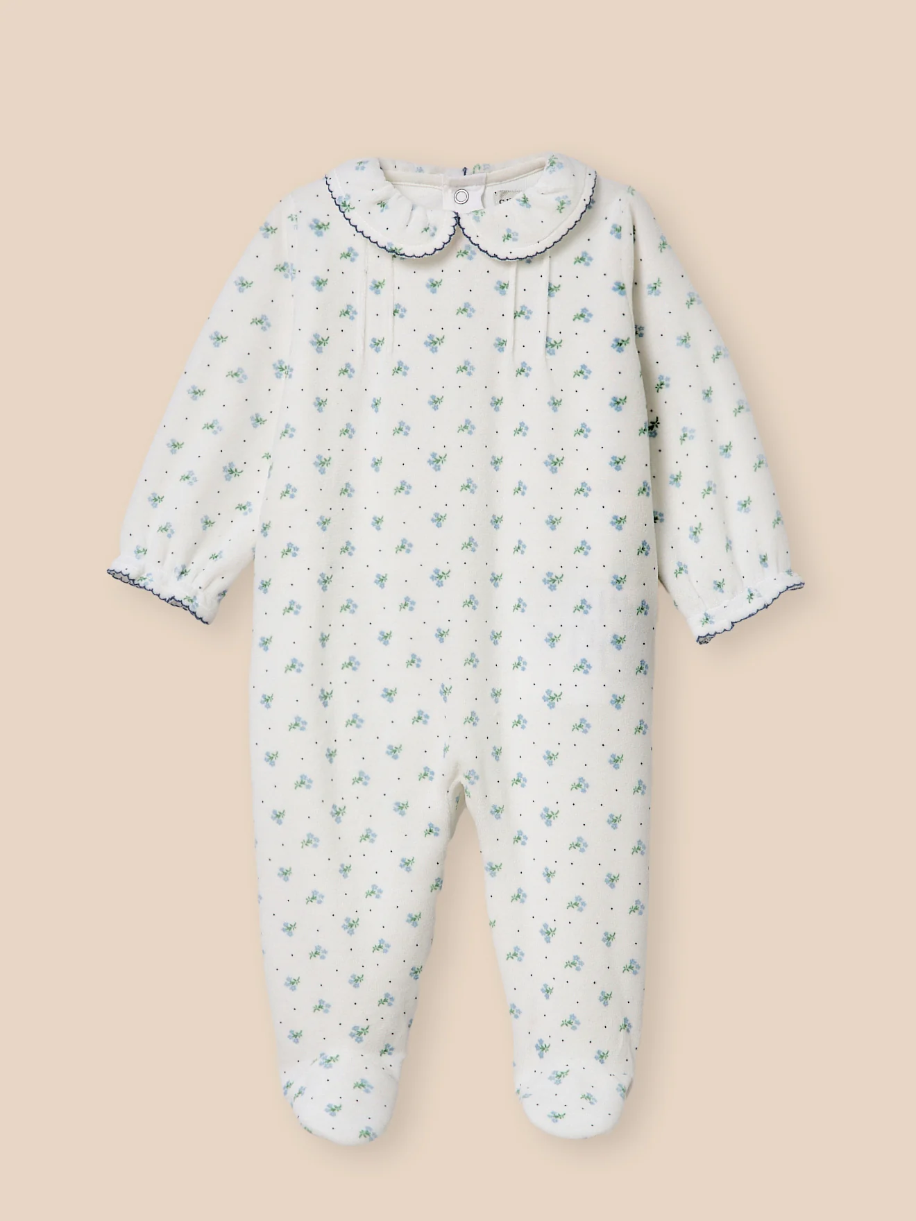 Tout en douceur et raffinement, avec son col Claudine et son imprimé délicat.