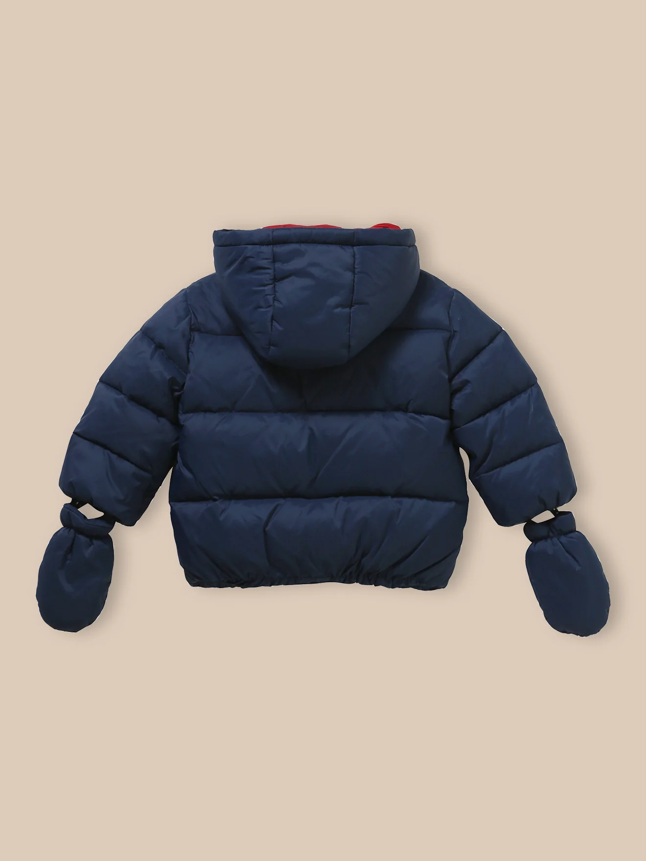 - 2 poches passepoilées. Bord-côtes aux poignets. Moufles détachables par pressions