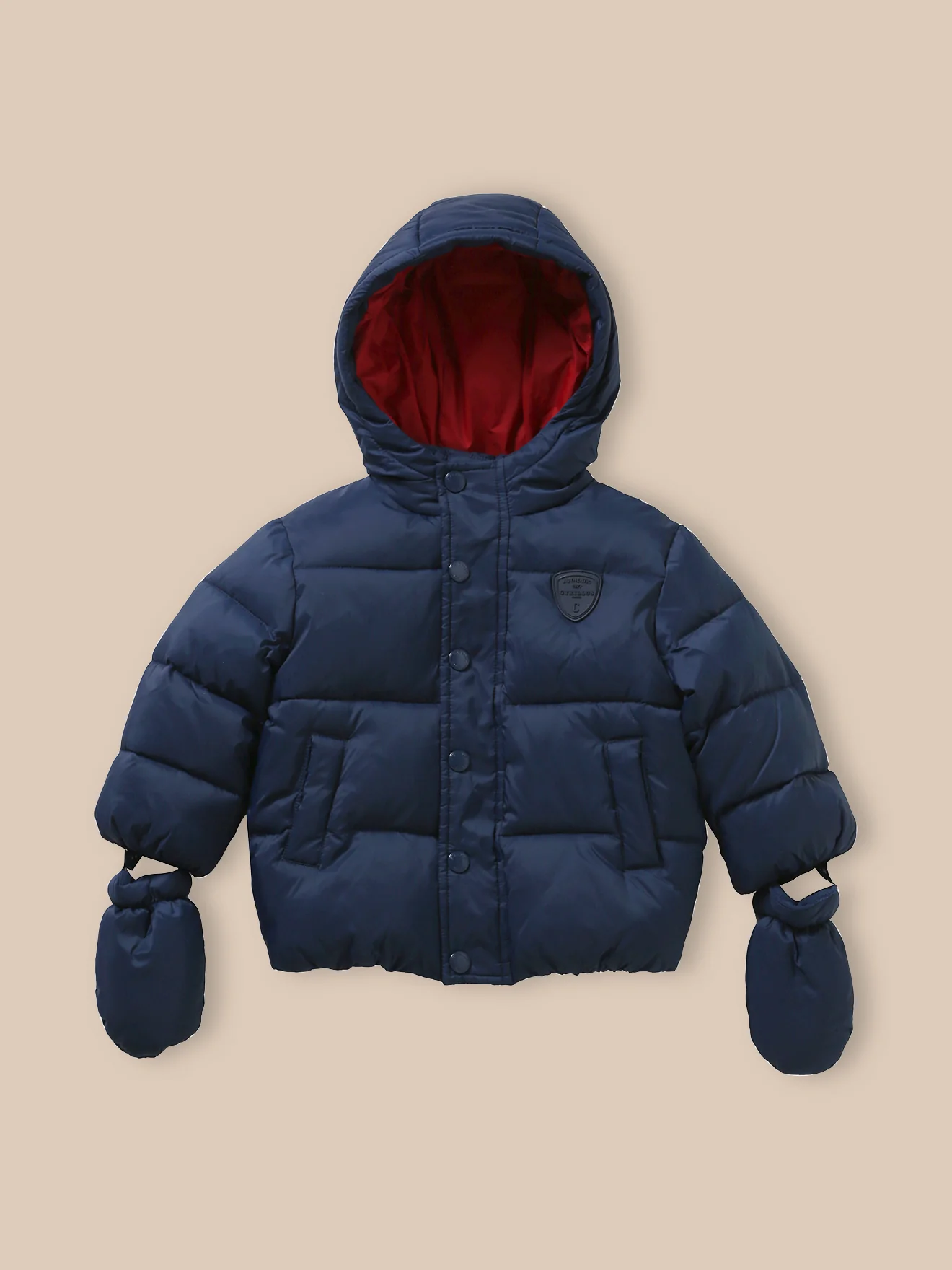 Tissu technique déperlant, doublure douce en sherpa, garnissage épais et chaud, capuche protectrice, moufles… Une doudoune de qualité bien pensée pour protéger efficacement votre enfant.