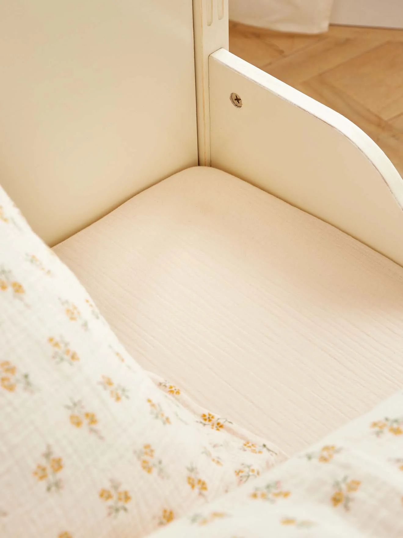 Drap-housse en gaze de coton biologique conçu pour la literie des plus jeunes avec matelas en 70 x 140 cm. La gaze de coton est particulièrement confortable. Elle est reconnaissable par son aspect aérien et légèrement gaufré.