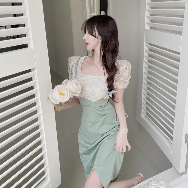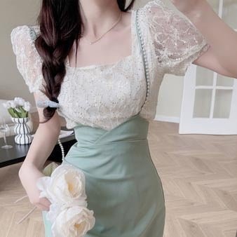 Cette tenue est composée d’un haut brodé et d’une jupe avec de longues bretelles. C’est un ensemble parfait pour l’été en Corée du Sud. La fraicheur de ce design vintage est idéale pour les femmes féminines.