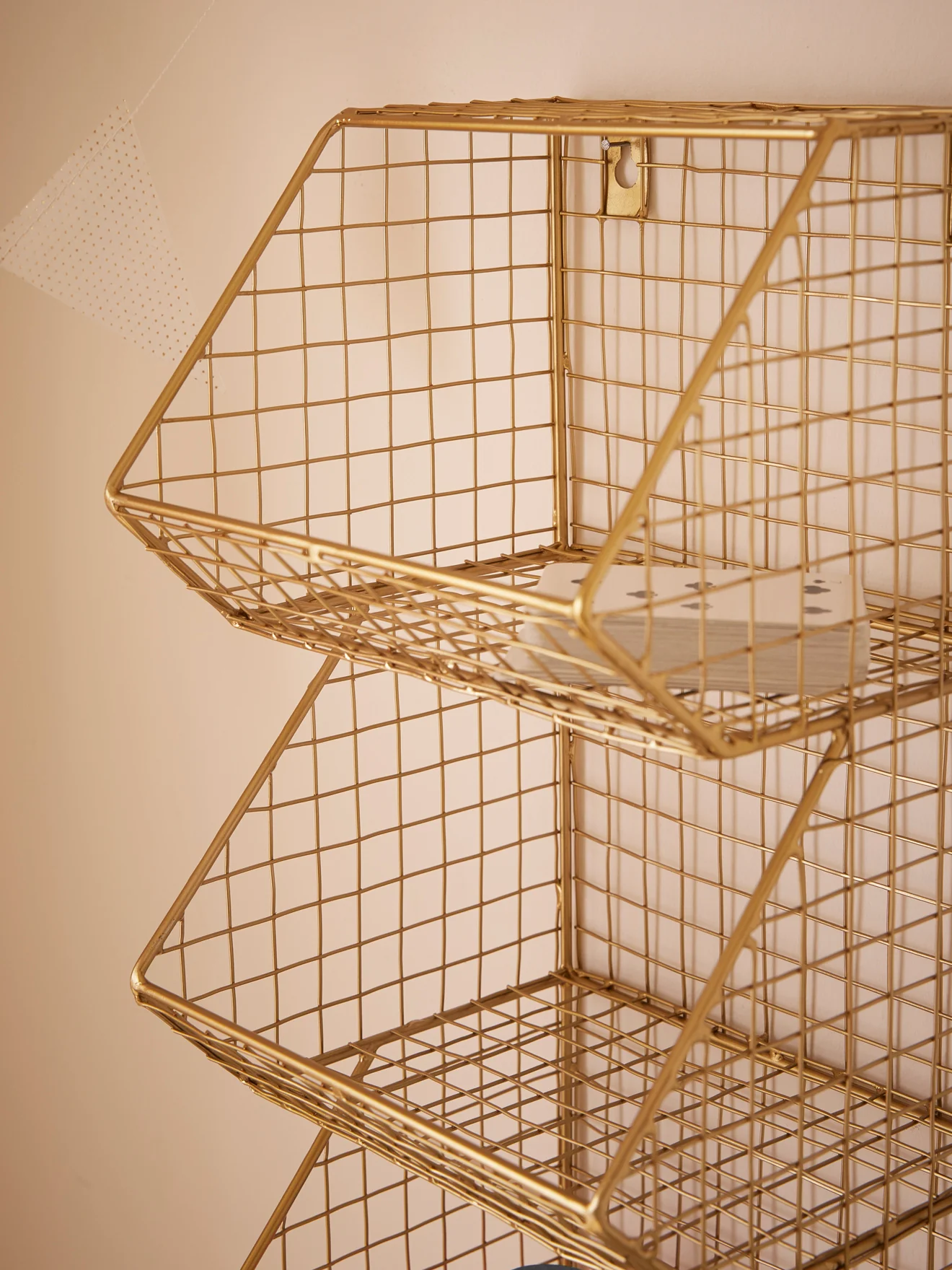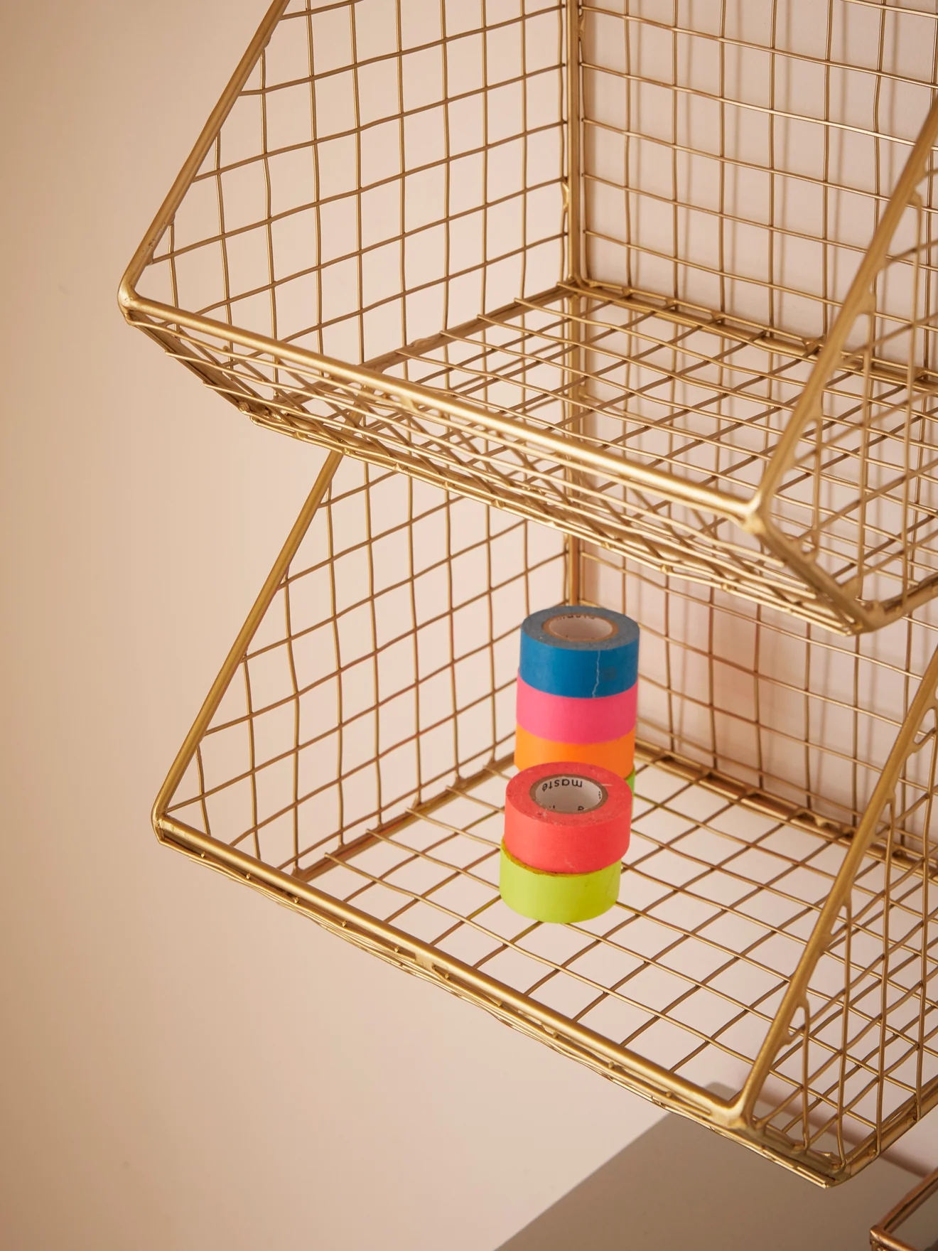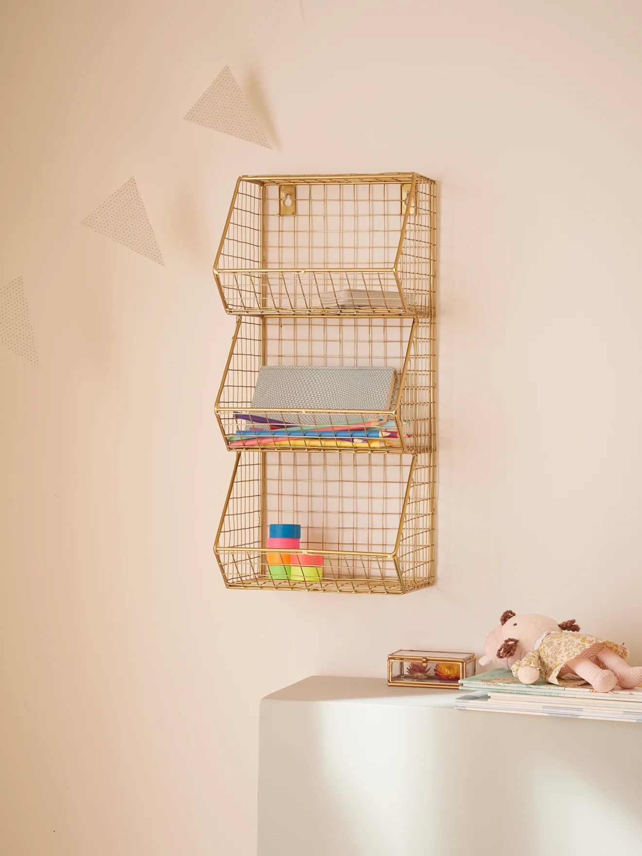 Étagère murale en métal filaire composée de 3 casiers. Un rangement déco d’inspiration industrielle. Dimensions totales : H.45 x L.20 x P.18 cm env. Hauteur casiers : 15 cm env. Poids max. supporté : 3 kg. Se fixe facilement au mur à l’aide de 2 vis. – Peinture Farrow&Ball Ball Green –