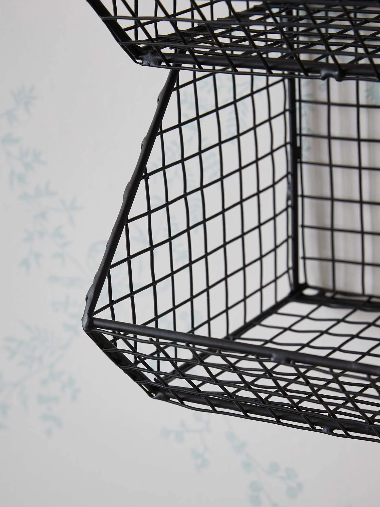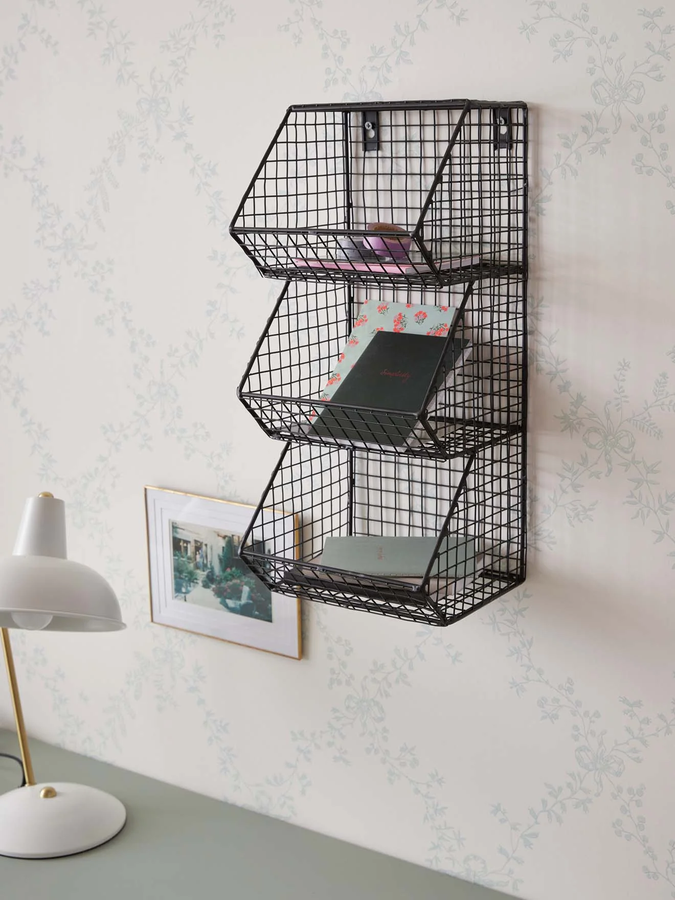 Étagère murale en métal filaire composée de 3 casiers. Un rangement déco d’inspiration industrielle.