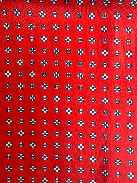 Foulard ascot homme en soie rouge à motifs géométriques marine et blancs