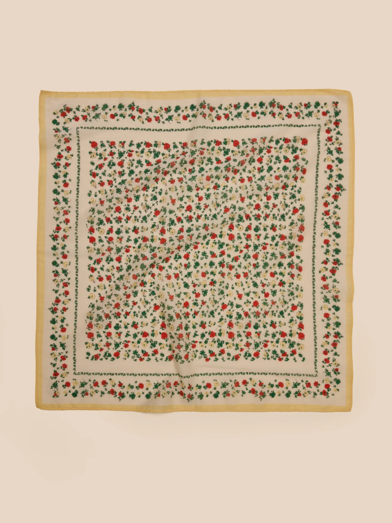Un foulard au motif fleuri, romantique et délicat. Dim. 65×65 cm env.