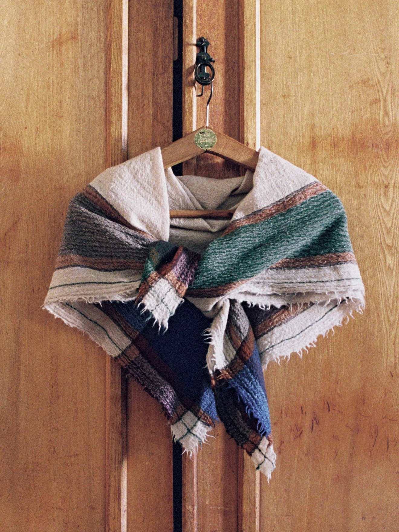 Tissé à la main en Inde dans une laine fine et douce, il déploie une texture vivante et chaleureuse, portée par ses bords frangés délicats.