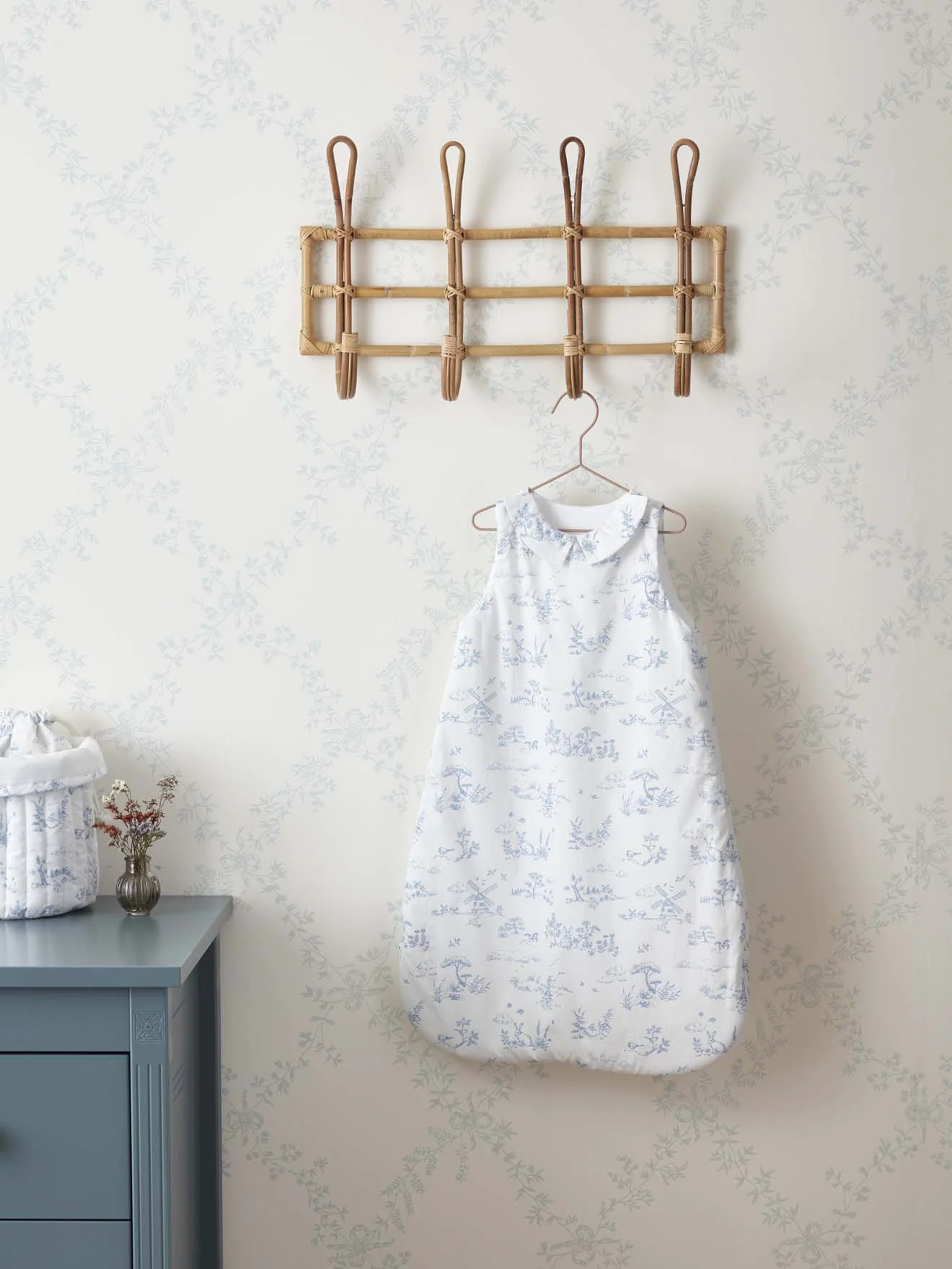 Gigoteuse en percale de coton bio au tendre motif inspiré de la toile de Jouy. Son indice de chaleur est de 3 (TOG 3). Cet indice offre une chaleur supérieure, idéale en plein hiver ou dans une chambre dont la température ne dépasse pas les 16 degrés.