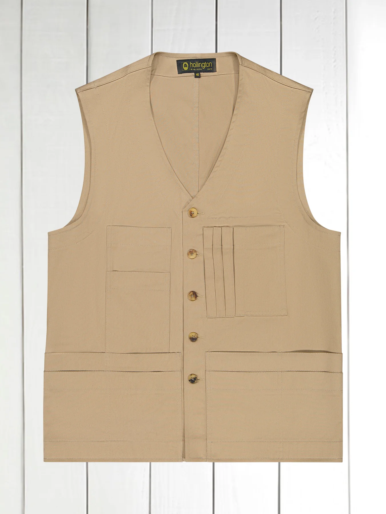 gilet 20 poches en serge de coton extensible sable