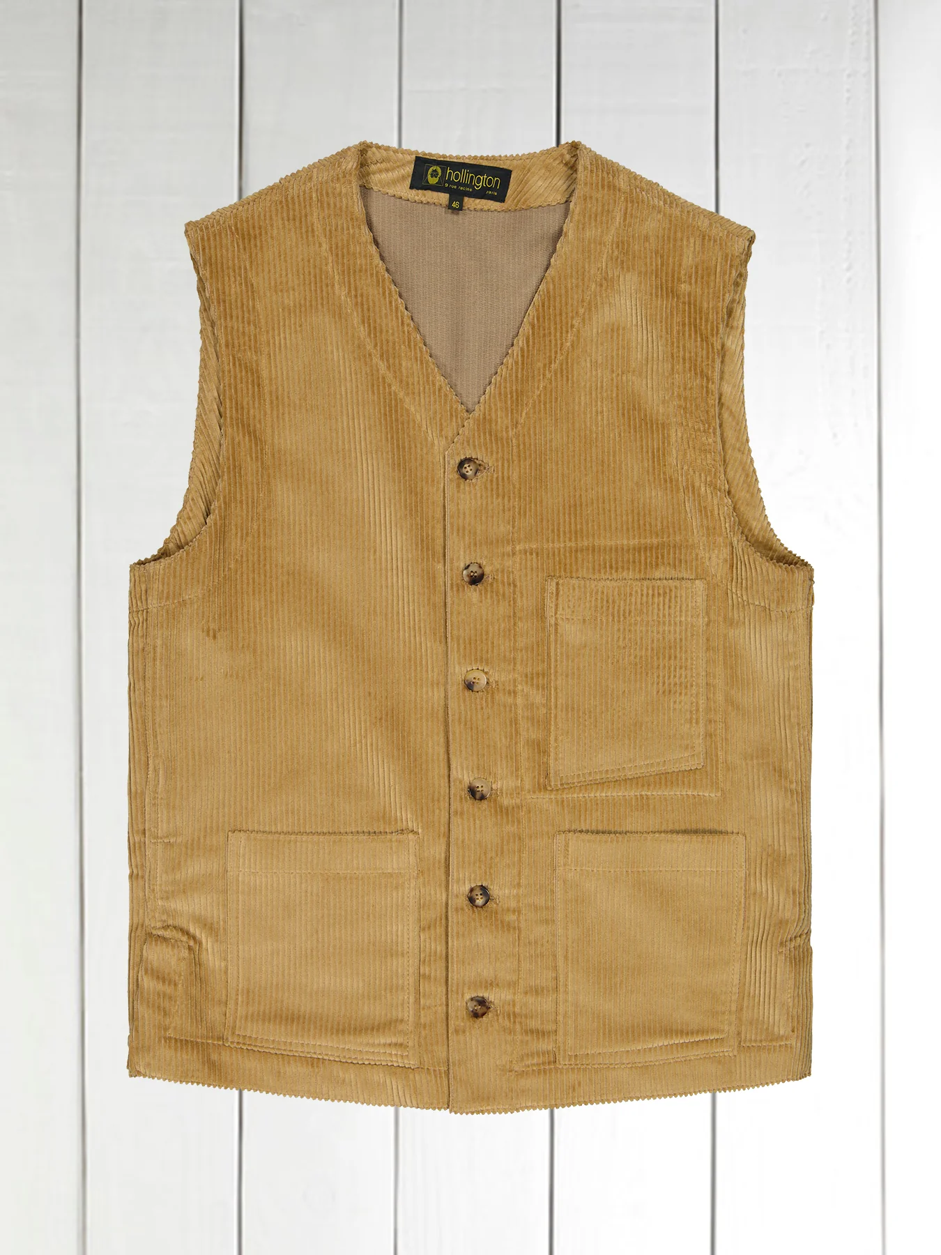 gilet à poches plaquées en velours de laine sable