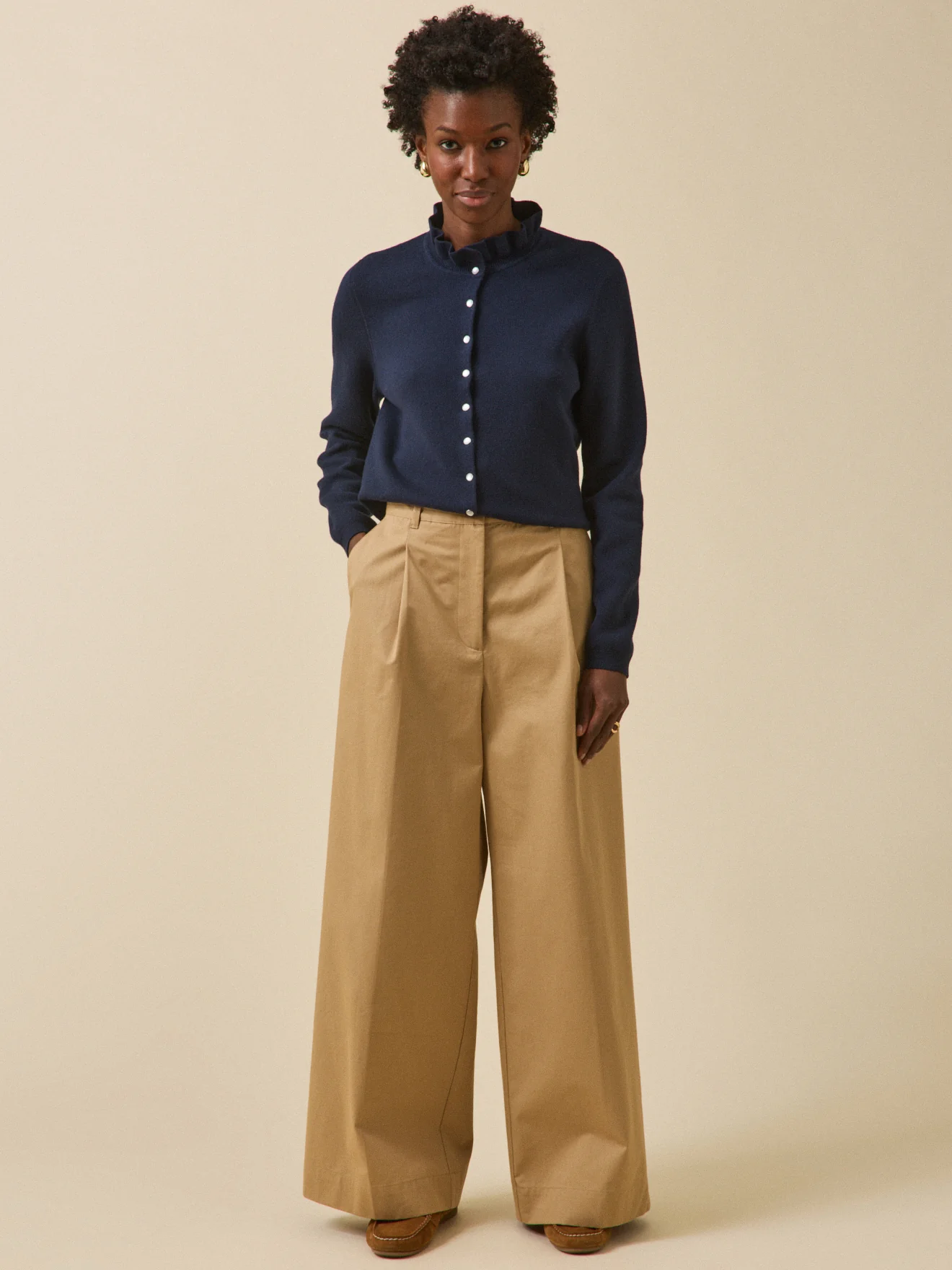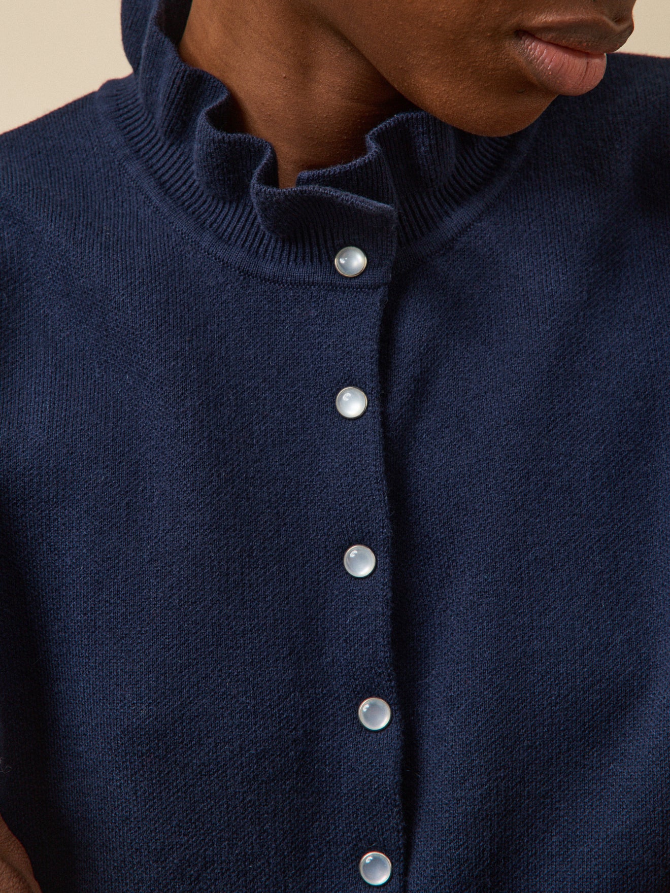 Les pressions se font bijoux sur cette maille précieuse au détail volanté. Signature Cyrillus, le gilet devient une pièce moderne et raffinée, à porter comme un pull à même la peau.