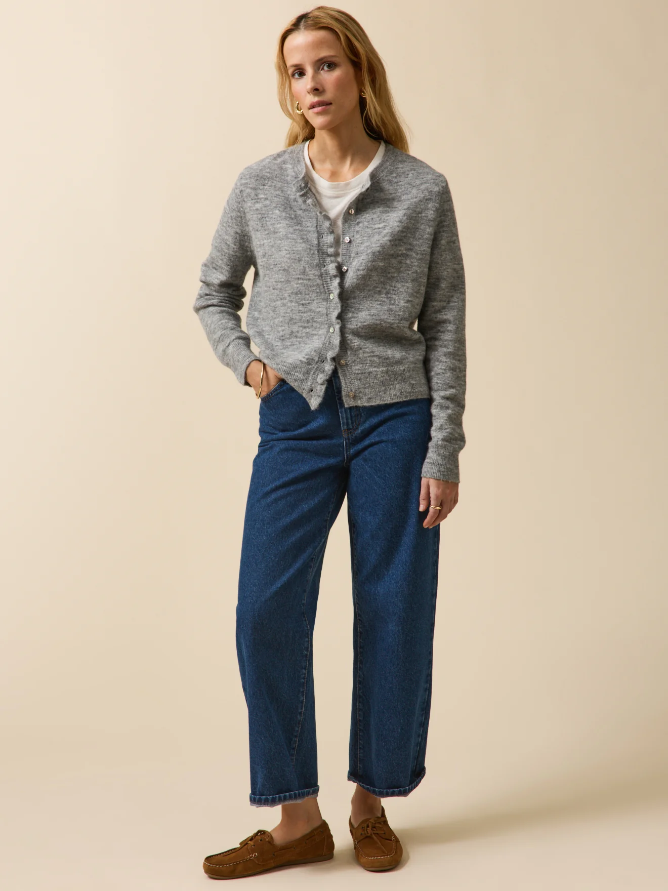 Sur une maille chinée chic, le pull s’anime d’une finition féminine. Un style naturellement doux pour accompagner tous les looks, qu’ils soient urbains ou décontractés. Col rond, manches longues, volant en tricot le long de la patte de boutonnage Finitions bord-côtes ; long. dos 54 cm (en taille S)
