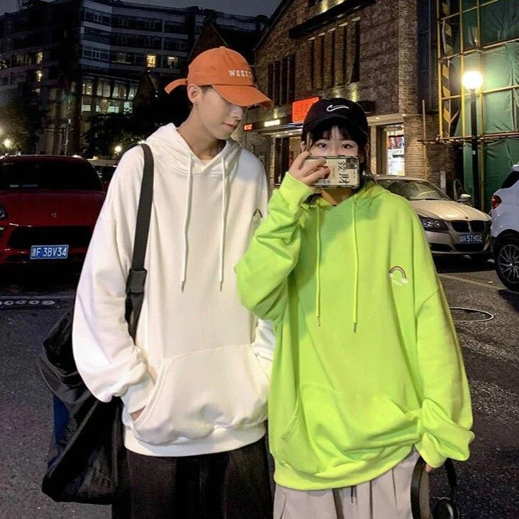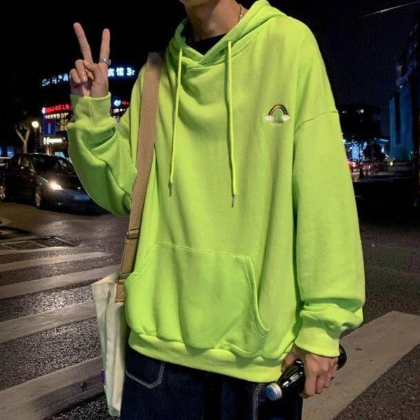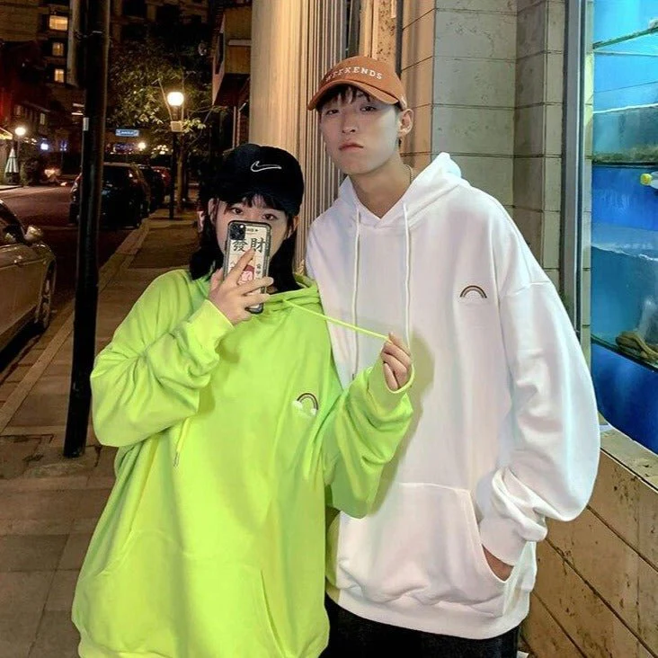 Si vous aimez les arcs-en-ciel, ce sweat à capuche va vous plaire. Il s’agit d’un sweat confortable avec un arc-en-ciel et l’inscription « Rainbow » brodé. Il est populaire en Corée du Sud, car il ajoute une touche d’amour et de douceur par rapport à un hoodie classique.