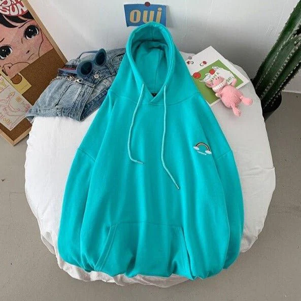 Voici un hoodie avec un petit arc-en-ciel brodé.